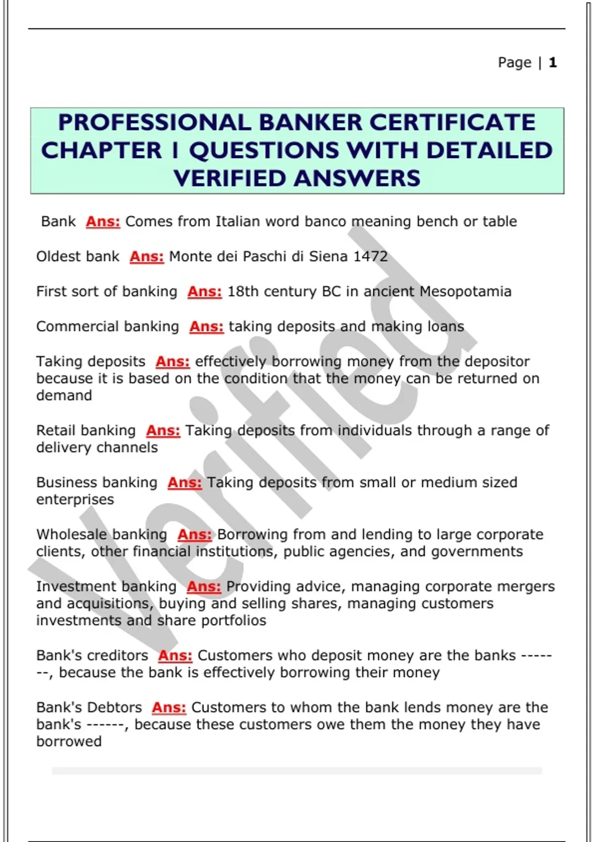 PROFESSIONAL BANKER CERTIFICATE CHAPTER 1 QUESTIONS WITH DETAILED VERIFIED ANSWERSPROFESSIONAL BANKER CERTIFICATE CHAPTER 1 QUESTIONS WITH DETAILED VERIFIED ANSWERSPROFESSIONAL BANKER CERTIFICATE CHAPTER 1 QUESTIONS WITH DETAILED VERIFIED ANSWERSPROFESSIONAL BANKER CERTIFICATE CHAPTER 1 QUESTIONS WITH DETAILED VERIFIED ANSWERSPROFESSIONAL BANKER CERTIFICATE CHAPTER 1 QUESTIONS WITH DETAILED VERIFIED ANSWERS