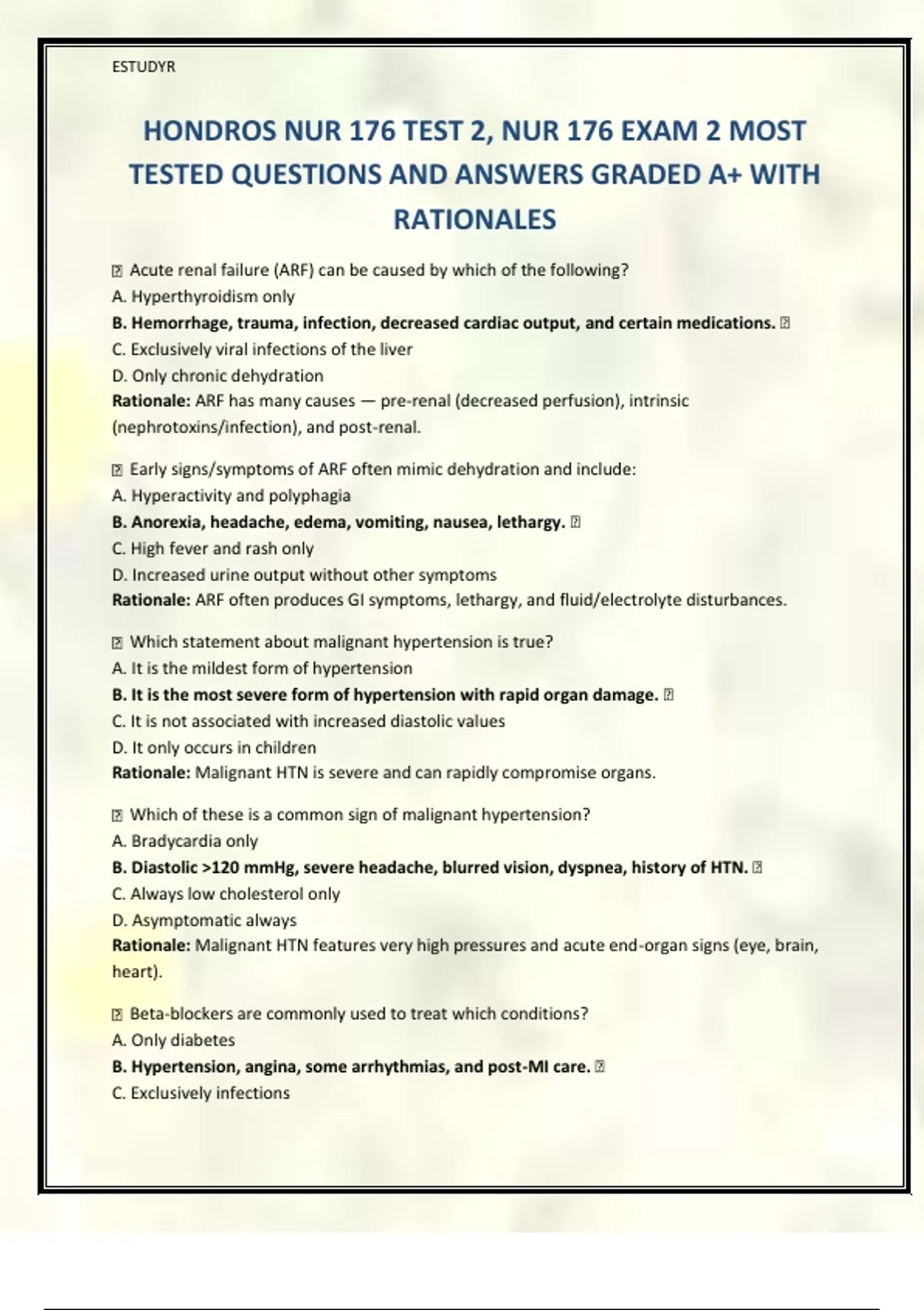 HONDROS NUR 176 TEST 2, NUR 176 EXAM 2 MOST