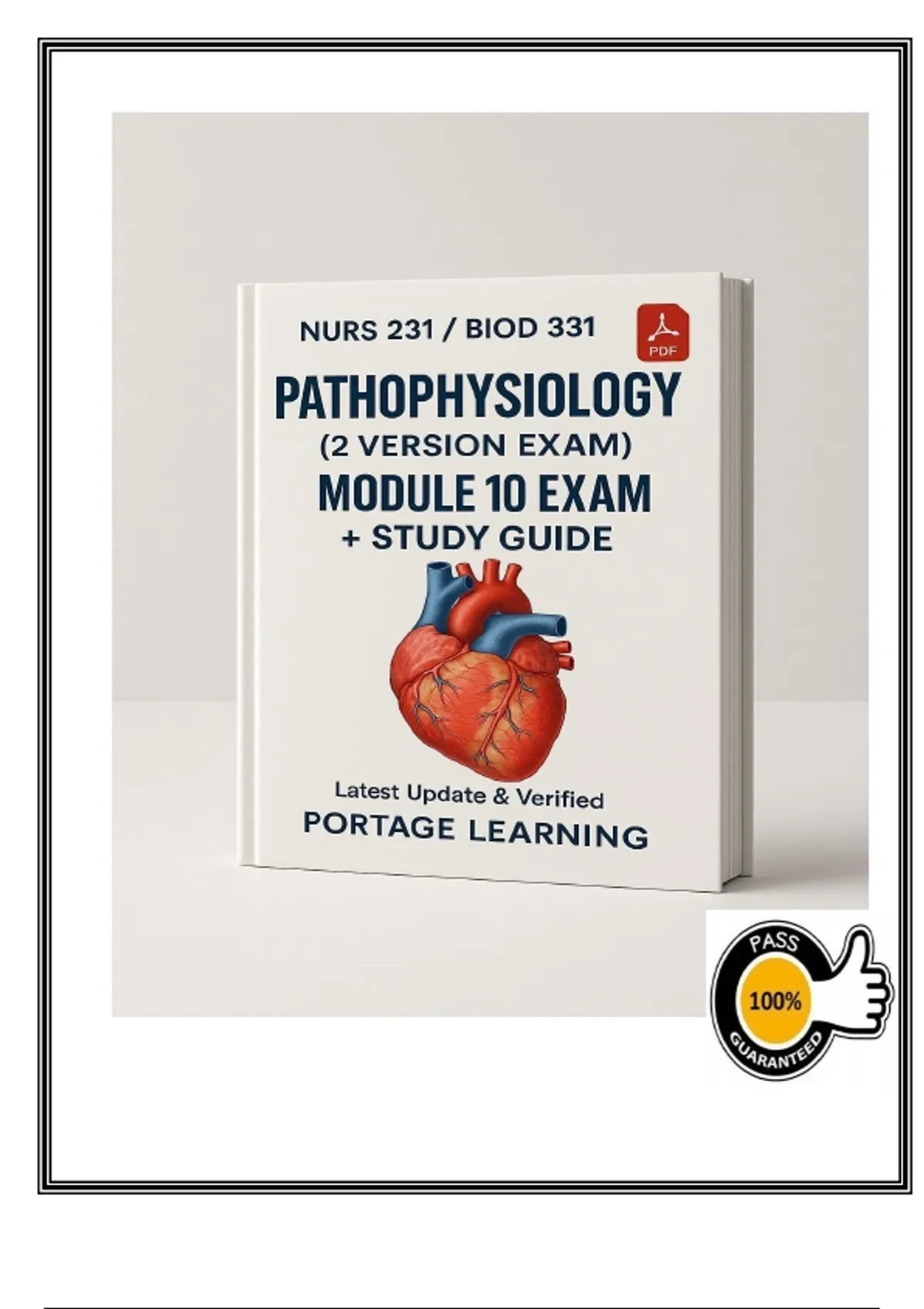 This document provides two full versions of Module 10 exam questions for the undergraduate course BIOD 331 Pathophysiology. It is designed for the 2025/2026 academic year and tailored to align with the curriculum of accredited online and campus-based nursing and health sciences programs. The content covers musculoskeletal system pathologies, joint disorders (such as osteoarthritis, gout), bone physiology and adaptive mechanisms, and associated compensatory responses. Ideal for instructors seeking ready-to-use assessments or students seeking structured exam practice, each version contains a mix of multiple-choice, true/false, matching, and short-answer clinical-scenario items, along with answer keys. The two-version format helps mitigate academic integrity concerns and supports exam reuse. Compatible with the textbook Porth’s Pathophysiology: Concepts of Altered Health States (11th Edition) for direct alignment of reading and assessment.
