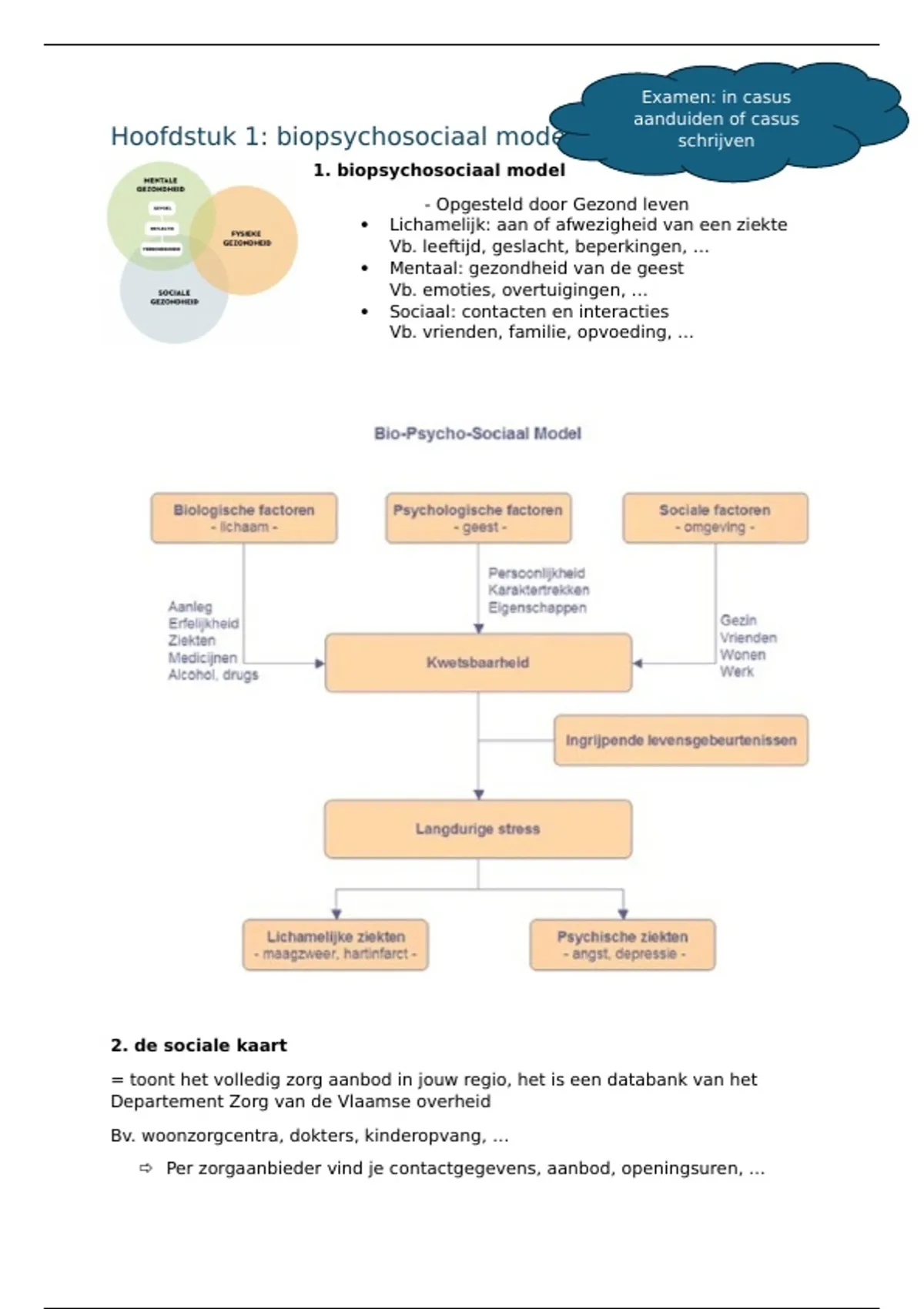 Hoofdstuk 1: biopsychosociaal model schrijven