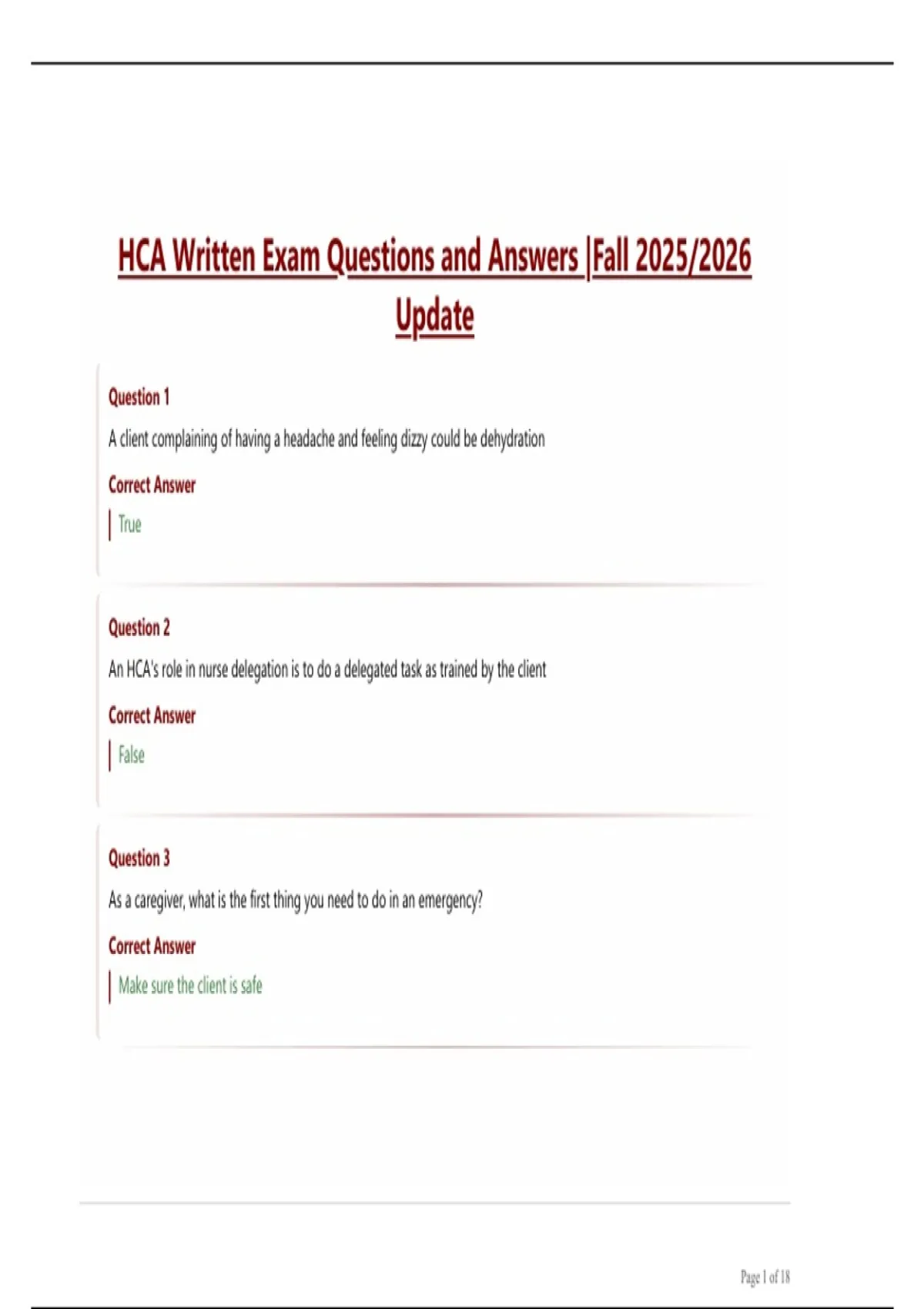 HCA Written Exam Questions and Answers |Fall 2025/2026 Update