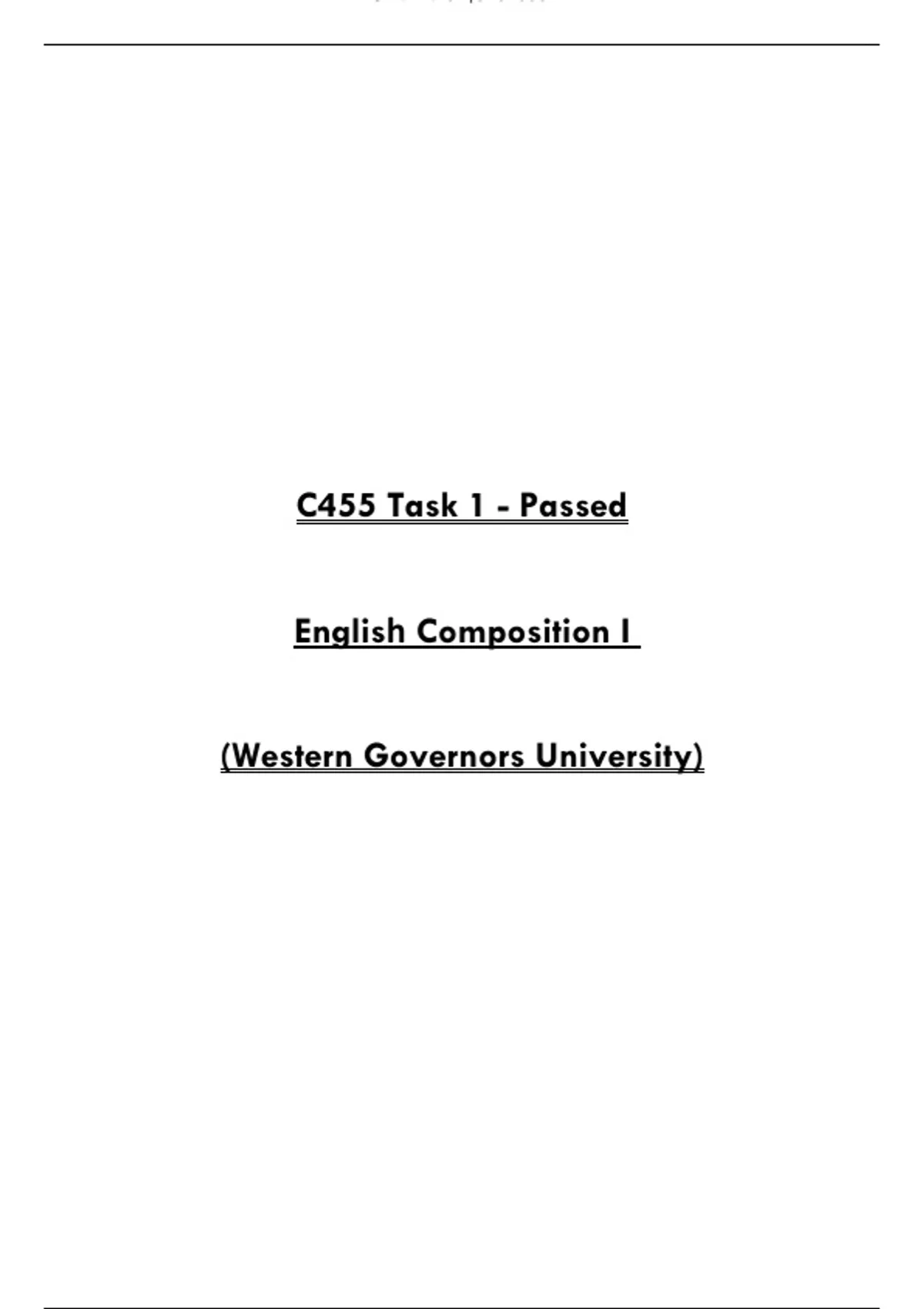 INSTANT DOWNLOAD PDF – This document contains a completed and passed *C455 Task 1* for English Composition I at Western Governors University. It demonstrates proficiency in planning, drafting, revising, and editing a well-organized academic essay. Includes clear thesis development, evidence-based reasoning, and proper formatting. A helpful example for WGU students preparing their own C455 submissions. C455 Task 1 WGU, English Composition I WGU, WGU essay writing example, C455 passed task, WGU academic writing guide, English composition essay structure, WGU C455 paper submission, thesis and revision sample WGU, composition I task 1 help, WGU college writing assignment