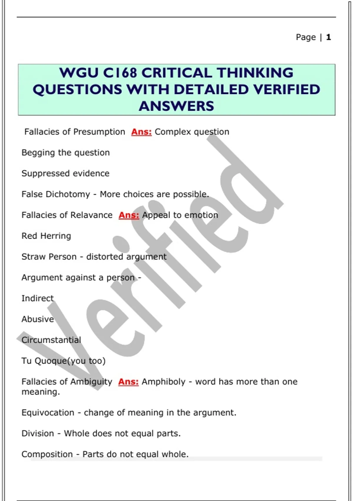 WGU C168 CRITICAL THINKING QUESTIONS WITH DETAILED VERIFIED ANSWERSWGU C168 CRITICAL THINKING QUESTIONS WITH DETAILED VERIFIED ANSWERS