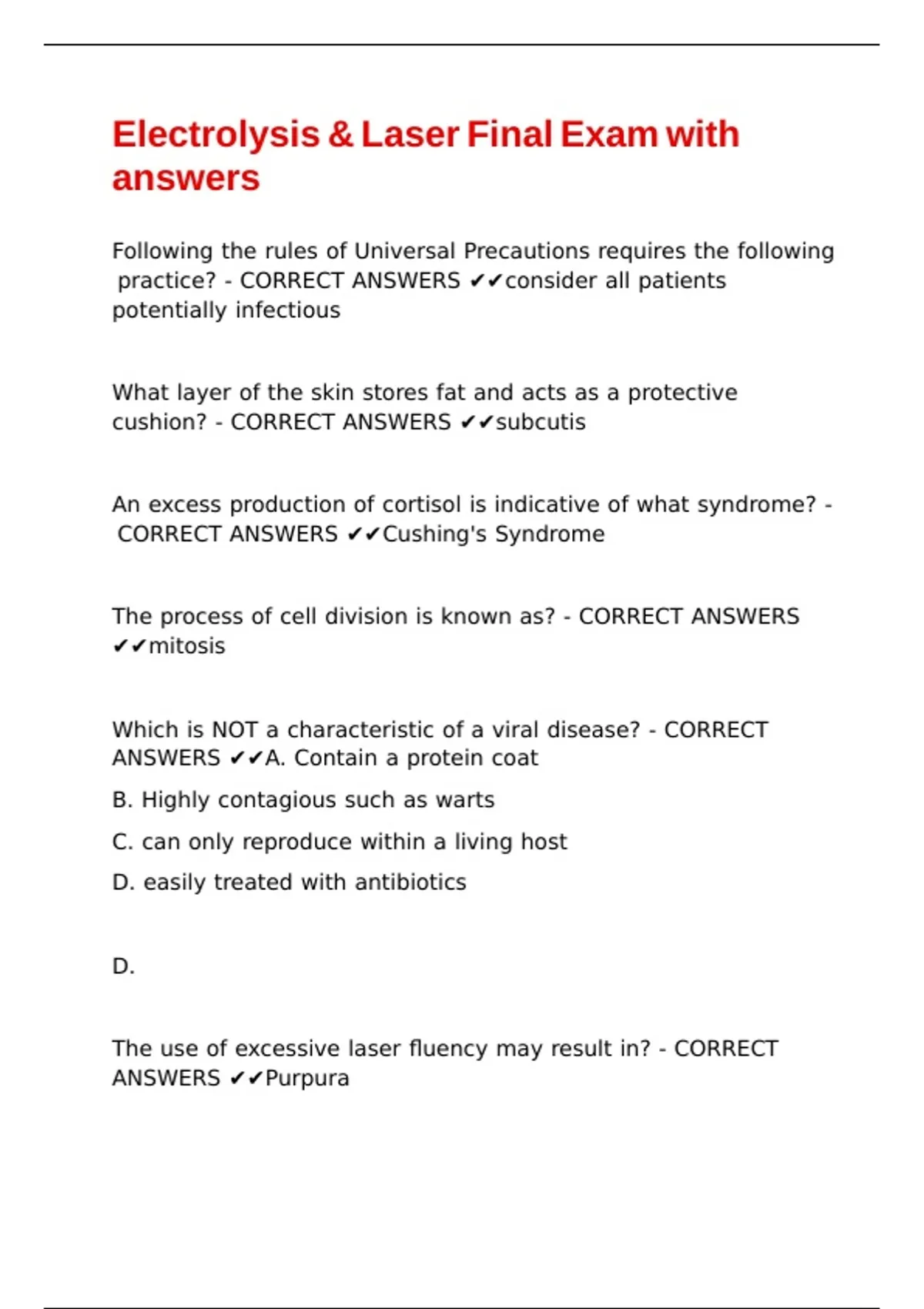 Electrolysis & Laser Final Exam with answers