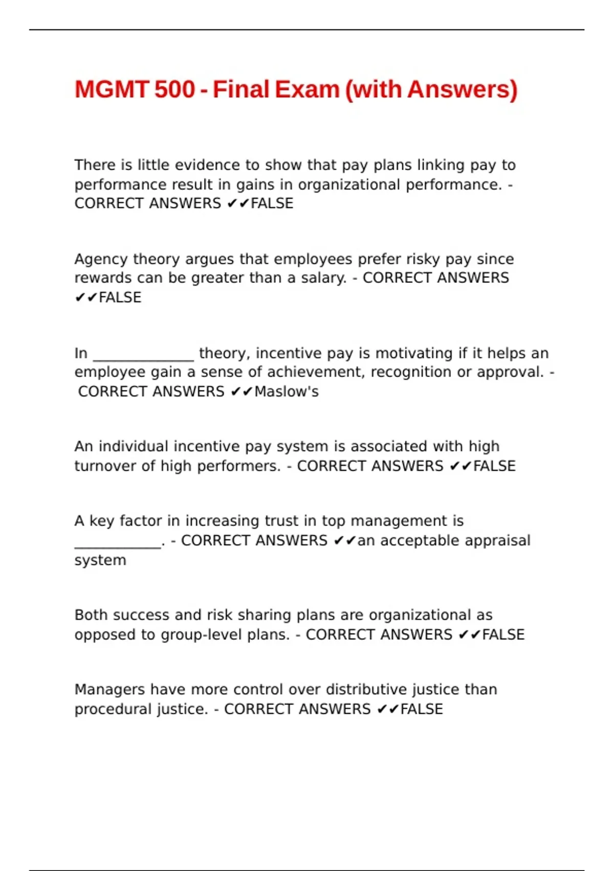 MGMT 500 - Final Exam (with Answers)