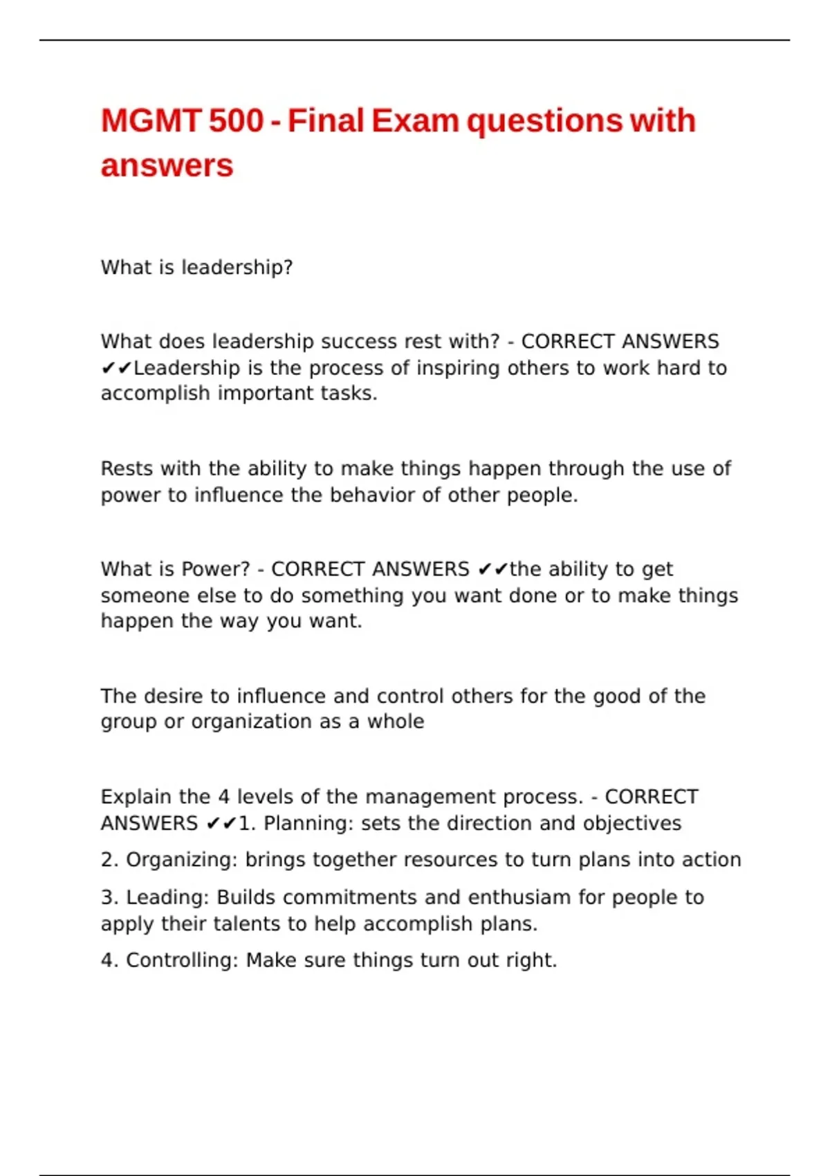 MGMT 500 - Final Exam questions with |\ |\ |\ |\ |\ |\ |\