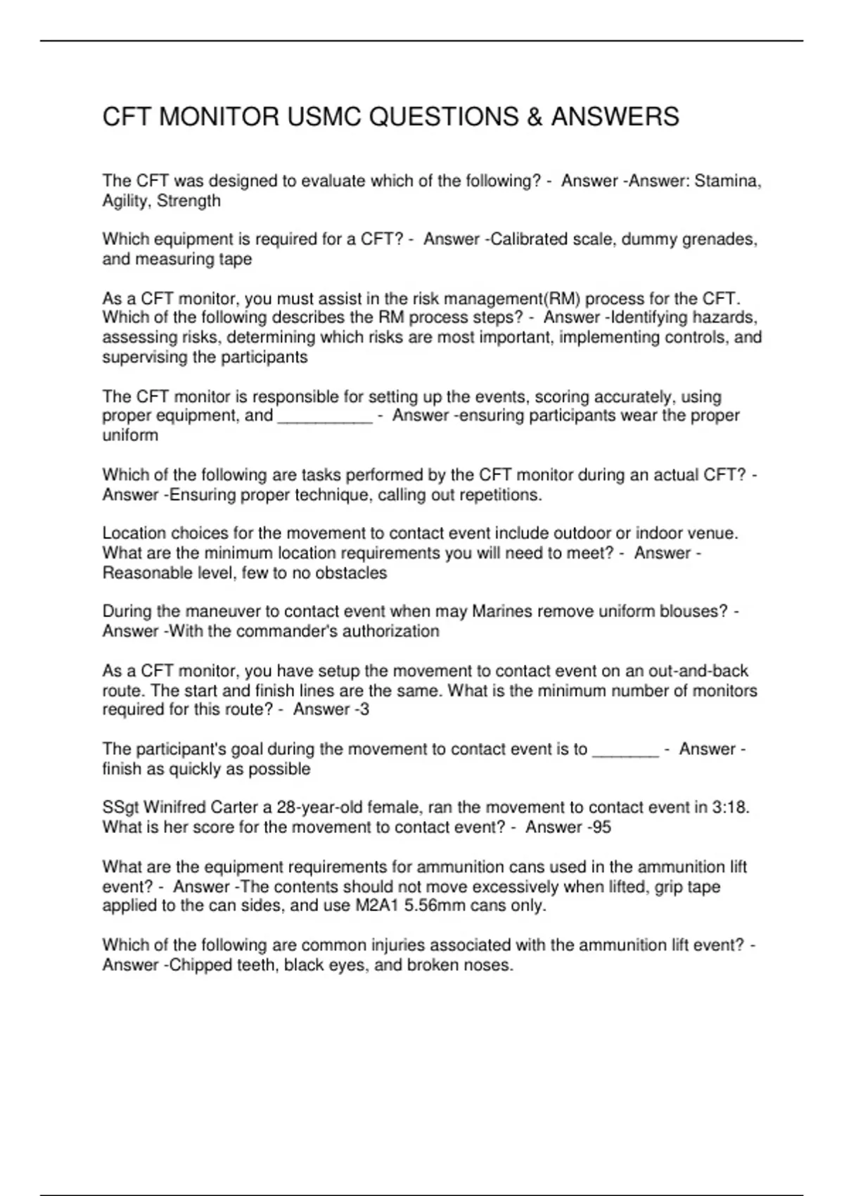 CFT MONITOR USMC QUESTIONS & ANSWERS