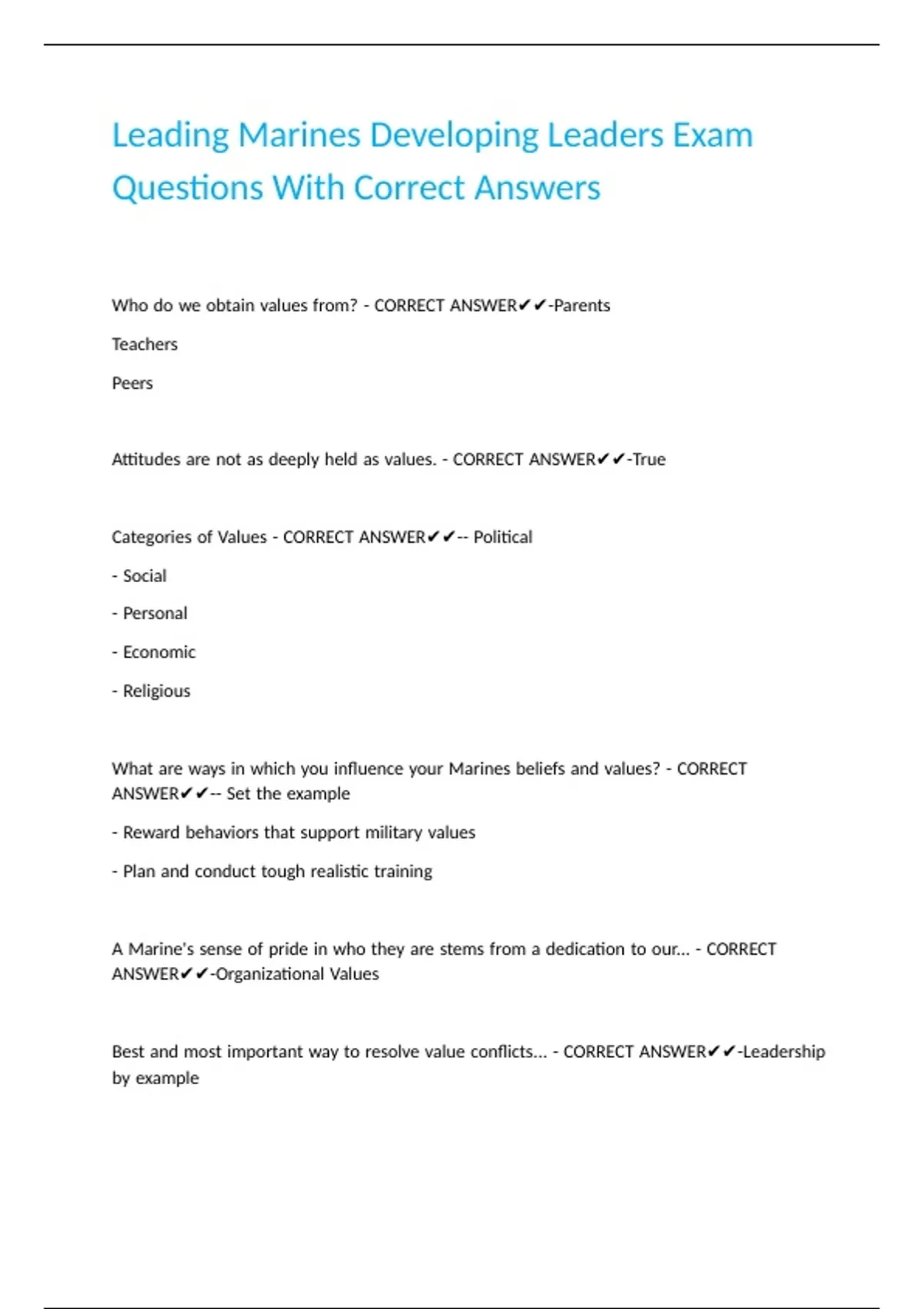 Leading Marines Developing Leaders Exam Questions With Correct Answers