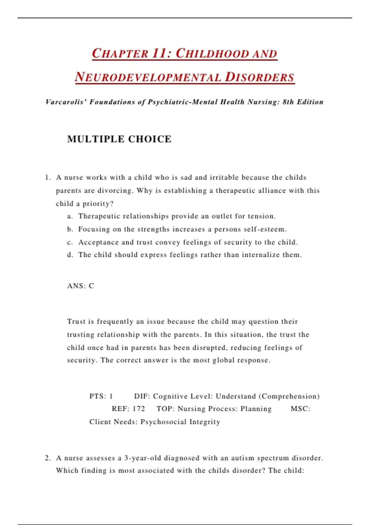 1. A nurse works with a child who is sad and irritable because the childs