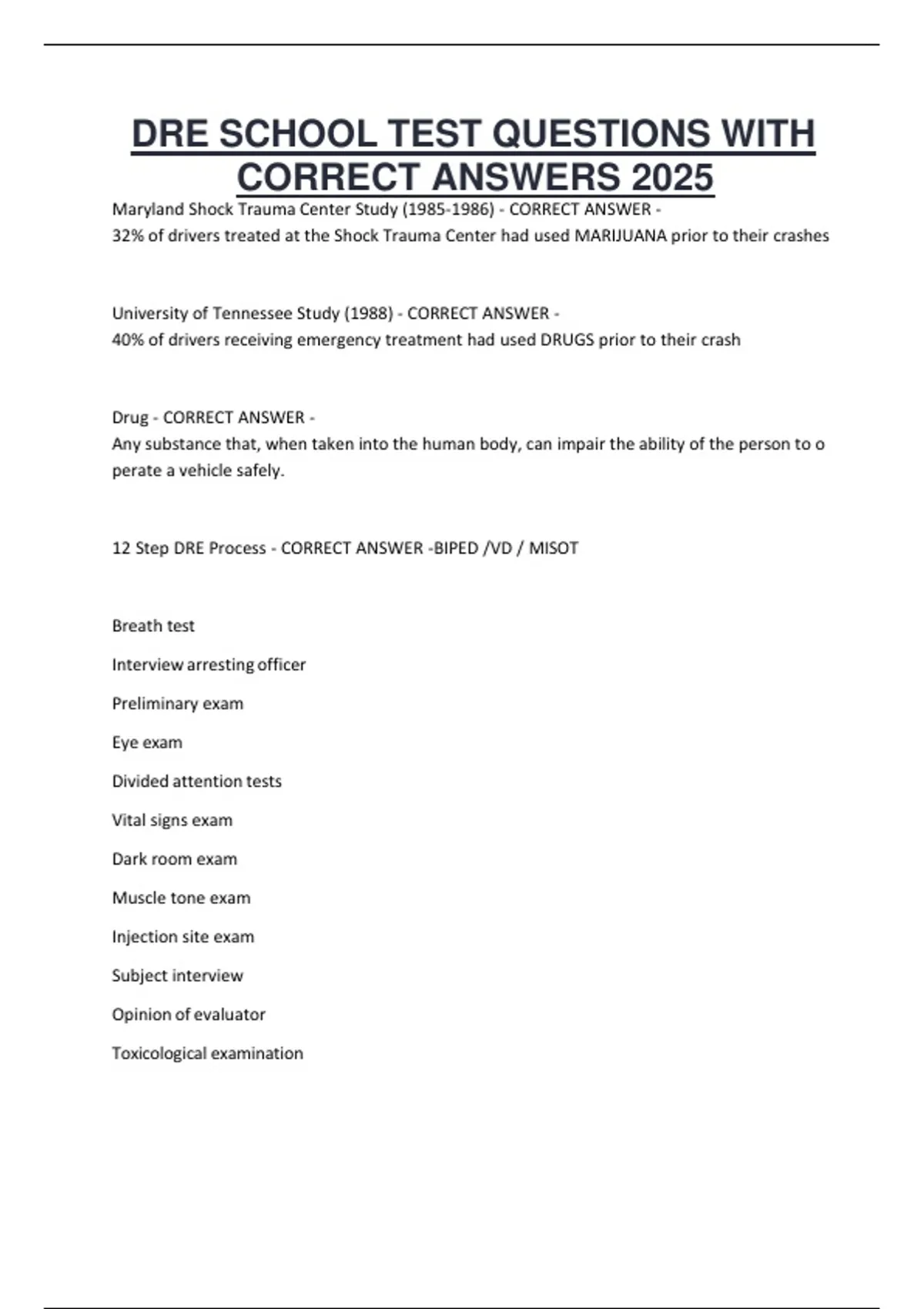 12 Step DRE Process - CORRECT ANSWER -BIPED /VD / MISOT