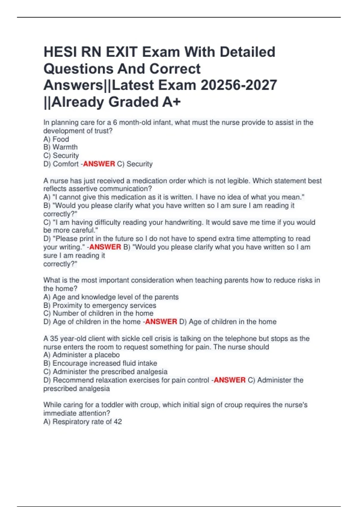 Welcome to MasterDocs Official Store — your ultimate destination for verified exam papers, detailed study guides, and high-quality notes trusted by hundreds of students worldwide. I specialize in providing accurate, well-organized, and up-to-date exam materials that help students study smarter, not harder. Each document is carefully reviewed, clearly formatted, and packed with questions and verified answers from recent exams to ensure top performance and confidence on test day. Whether you're preparing for university finals, nursing boards, accounting tests, healthcare management exams, or TEAS/NCLEX practice, you’ll find the exact material you need — concise, reliable, and results-driven. ✅ Why Students Choose My Docs: Verified answers and updated content Professionally formatted for quick review Guaranteed accuracy and clarity Affordable prices for premium quality 100% student satisfaction