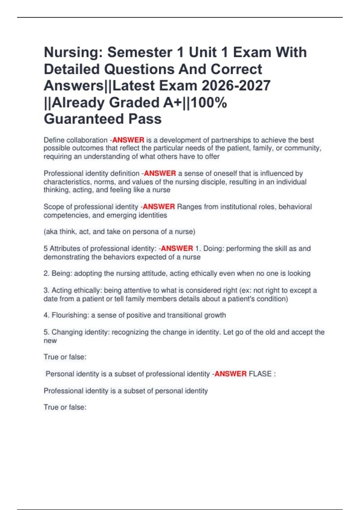 Welcome to MasterDocs Official Store — your ultimate destination for verified exam papers, detailed study guides, and high-quality notes trusted by hundreds of students worldwide. I specialize in providing accurate, well-organized, and up-to-date exam materials that help students study smarter, not harder. Each document is carefully reviewed, clearly formatted, and packed with questions and verified answers from recent exams to ensure top performance and confidence on test day. Whether you're preparing for university finals, nursing boards, accounting tests, healthcare management exams, or TEAS/NCLEX practice, you’ll find the exact material you need — concise, reliable, and results-driven. ✅ Why Students Choose My Docs: Verified answers and updated content Professionally formatted for quick review Guaranteed accuracy and clarity Affordable prices for premium quality 100% student satisfaction