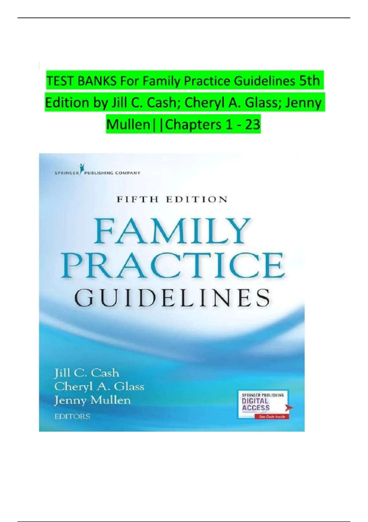 TEST BANKS For Family Practice Guidelines 5th Edition by Jill C. Cash; Cheryl A. Glass; Jenny Mullen||Chapters 1 - 23