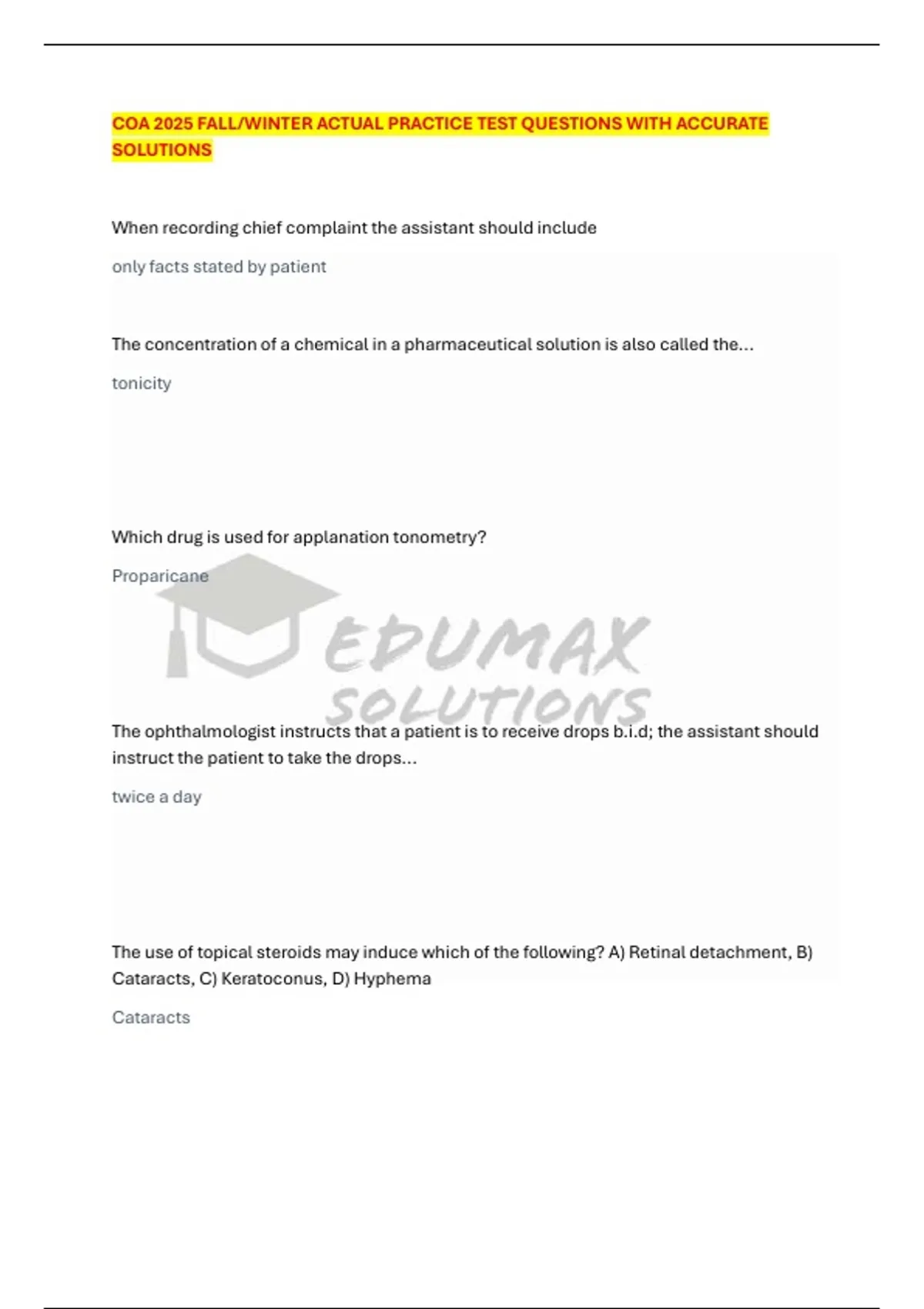 COA 2025 FALL/WINTER ACTUAL PRACTICE TEST QUESTIONS WITH ACCURATE SOLUTIONS