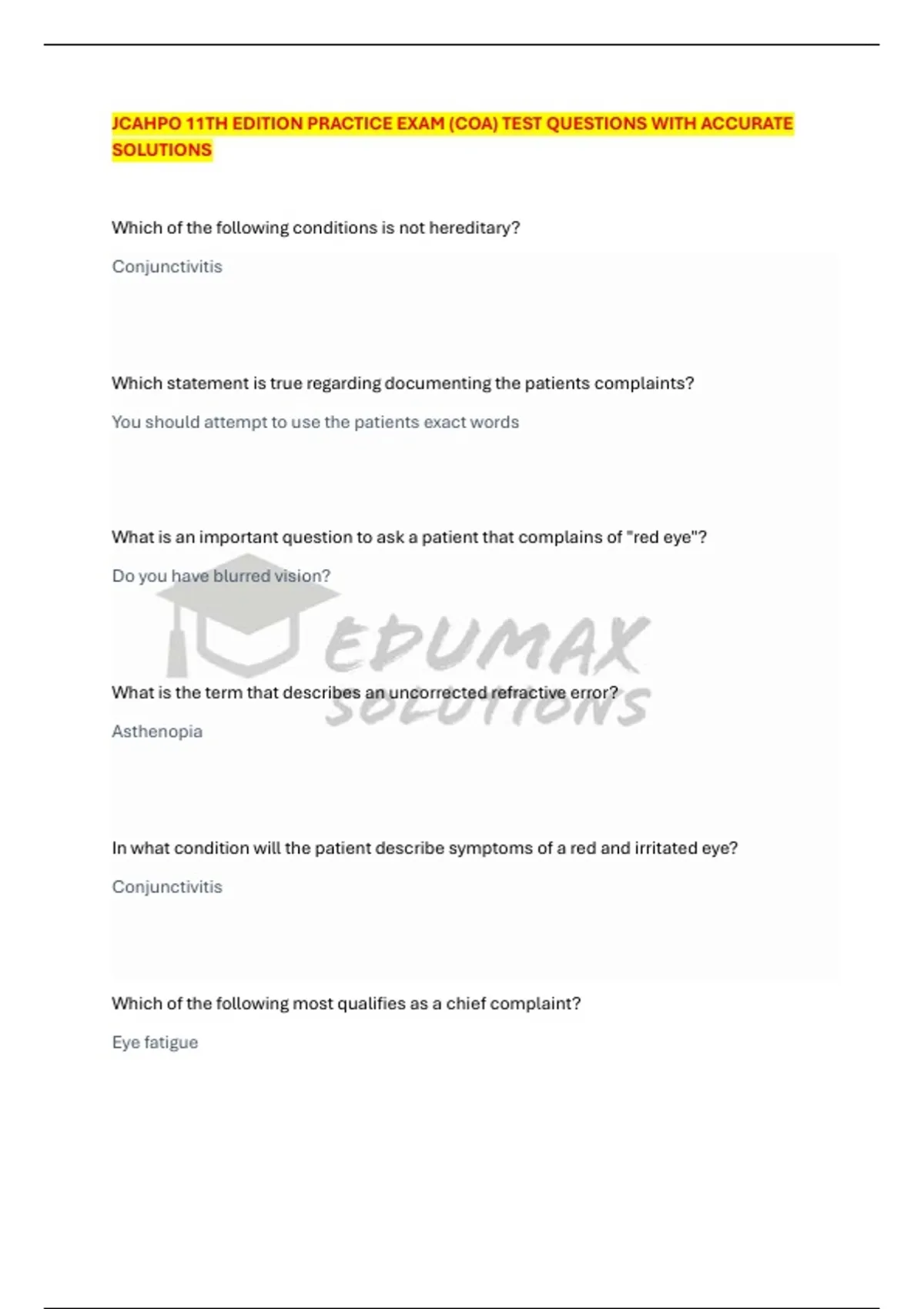 JCAHPO 11TH EDITION PRACTICE EXAM (COA) TEST QUESTIONS WITH ACCURATE