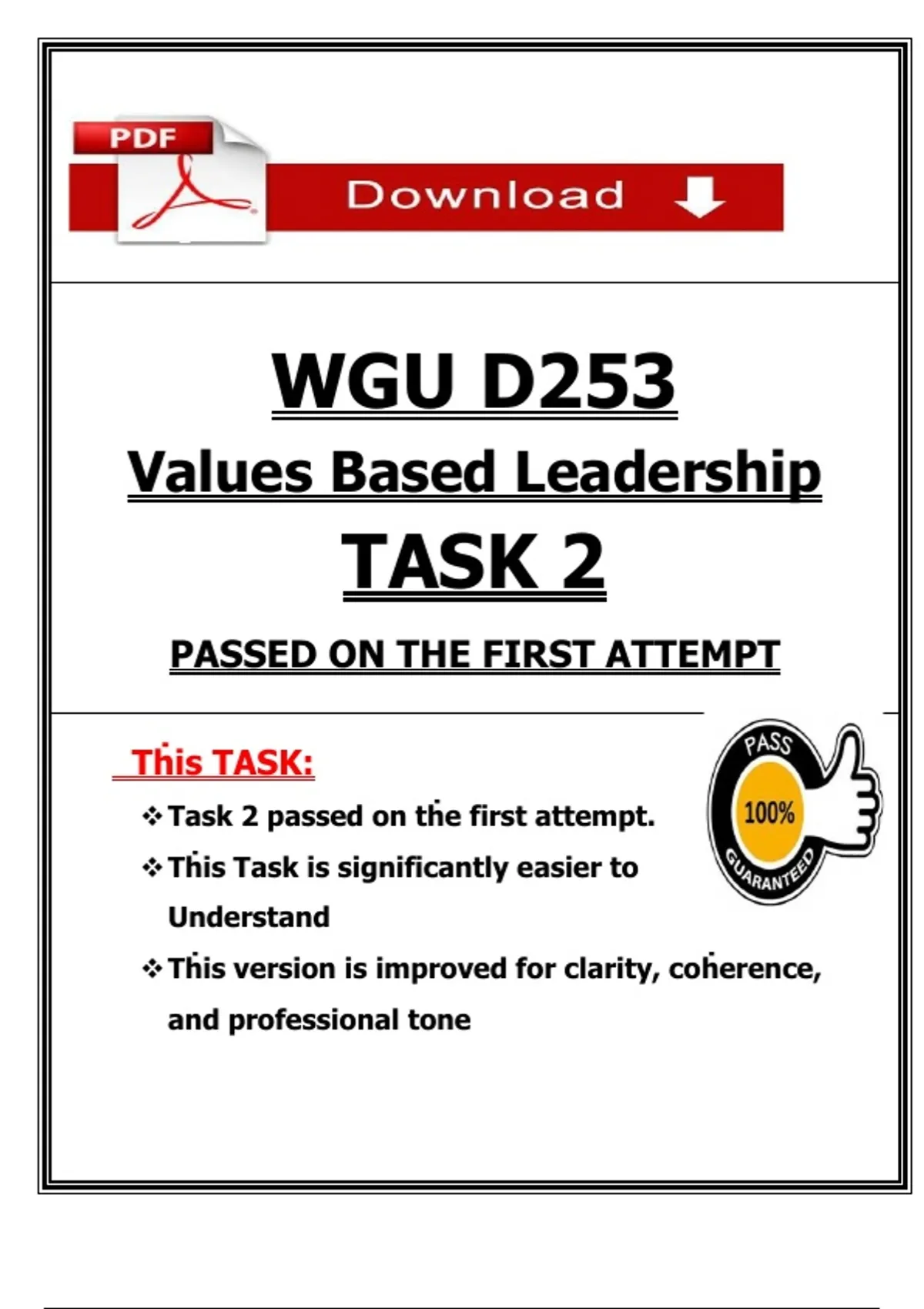 D253 Task 2 Values-Based Leadership - 2025 (Passed First Attempt)