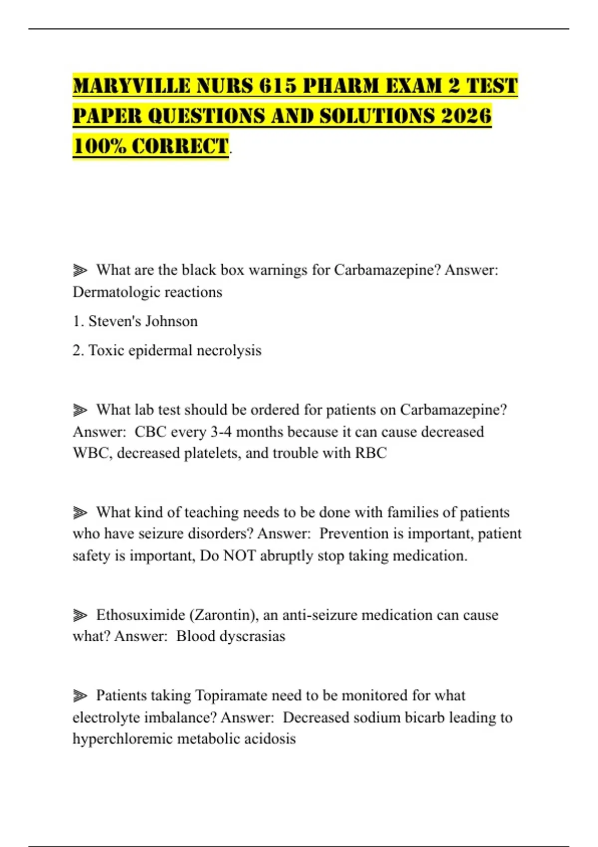 ⫸ What are the black box warnings for Carbamazepine? Answer: