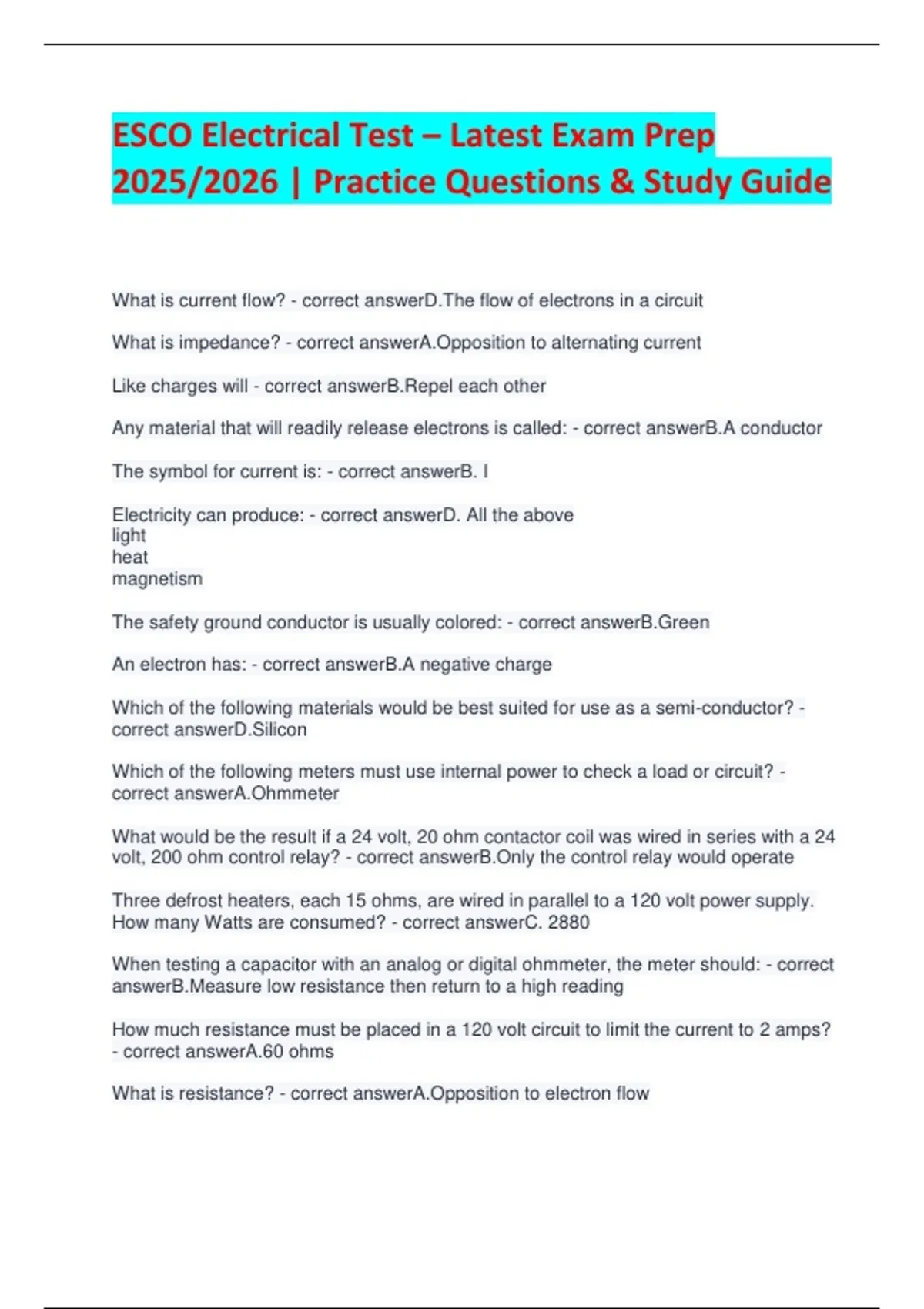 ESCO Electrical Test – Latest Exam Prep 2025/2026 | Practice Questions & Study Guide