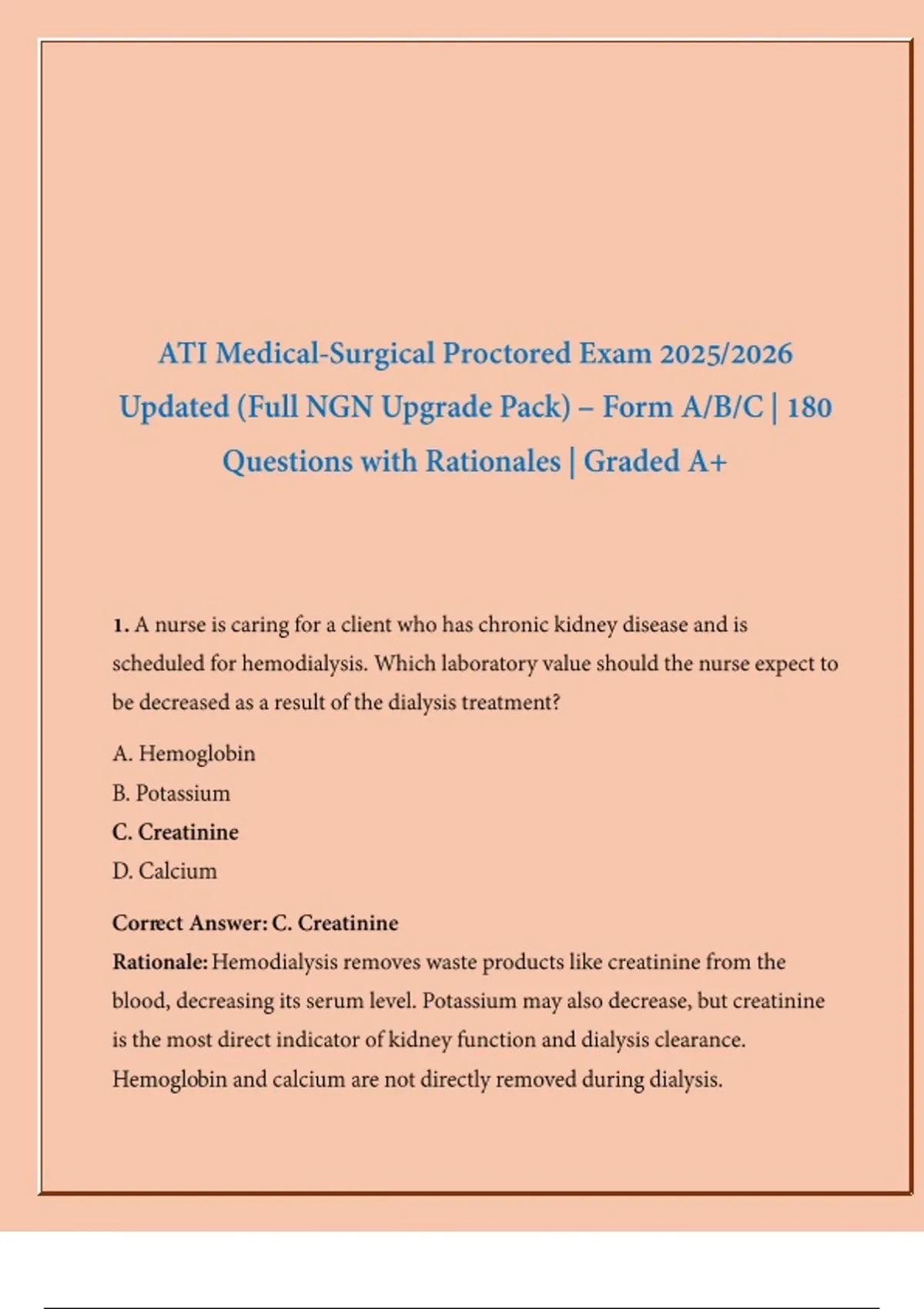 ATI Medical-Surgical Proctored Exam 2025/2026 Updated (Full NGN Upgrade Pack) – Form A/B/C | 180 Questions with Rationales | Graded A+