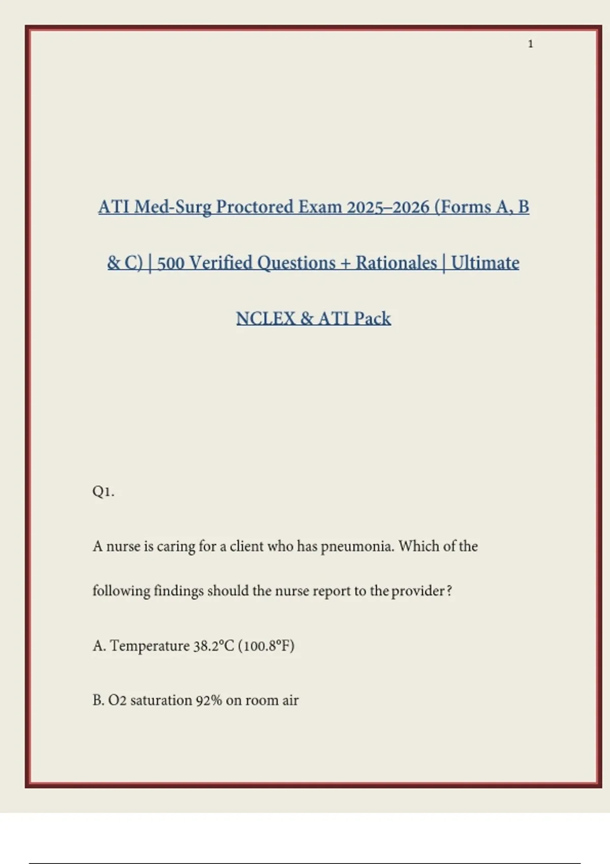 ATI Med-Surg Exam – Complete Answer Key & Test Preparation Material|| Updated