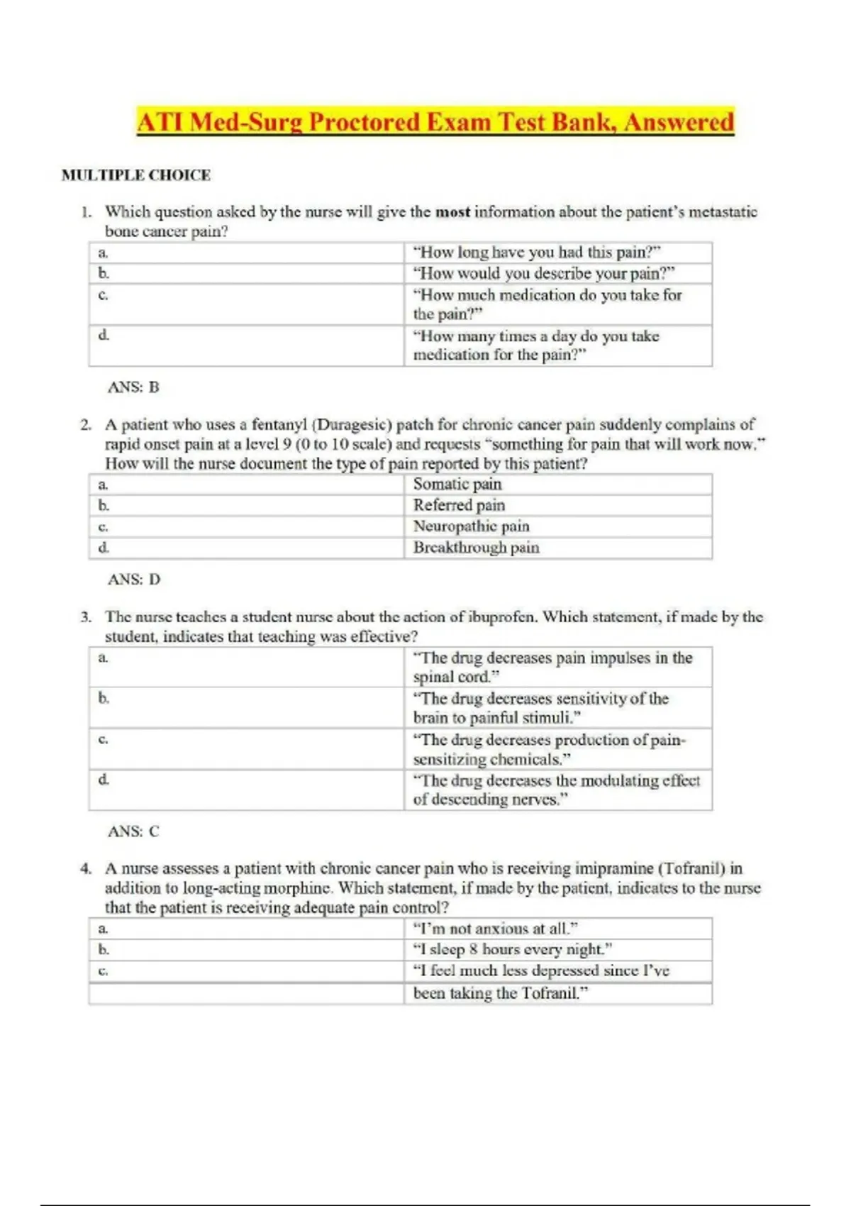 Ati Med Surg Proctored Exam Test Bank|| Anaswered Questions Updated.