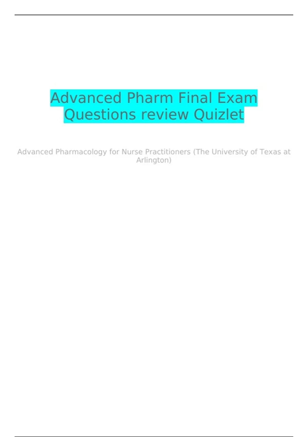 ,Advanced Pharm: Final Exam