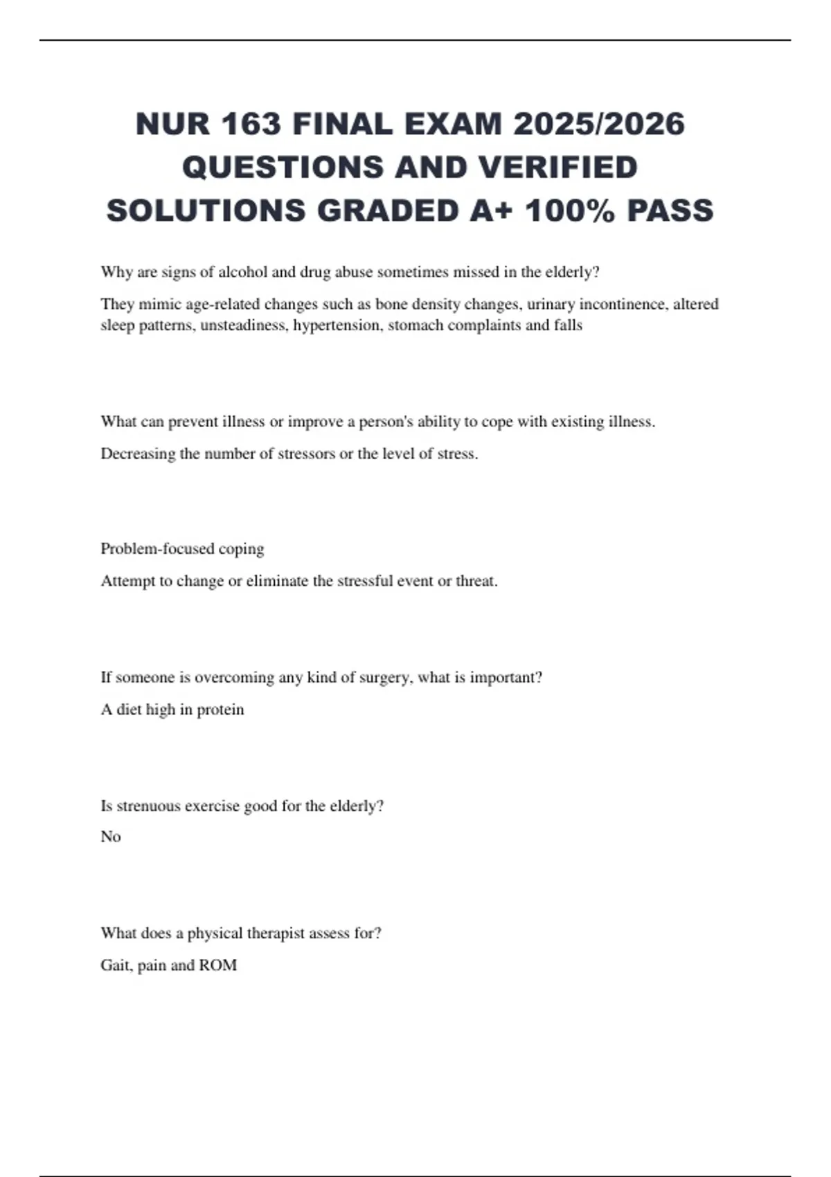 NUR 163 FINAL EXAM 2025/2026 QUESTIONS AND VERIFIED SOLUTIONS GRADED A+ 100% PASS NUR 163 FINAL EXAM 2025/2026 NUR 163 FINAL EXAM 2025/2026 QUESTIONS AND VERIFIED SOLUTIONS NUR 163 FINAL EXAM 2025/2026 QUESTIONS AND VERIFIED SOLUTIONS GRADED A+