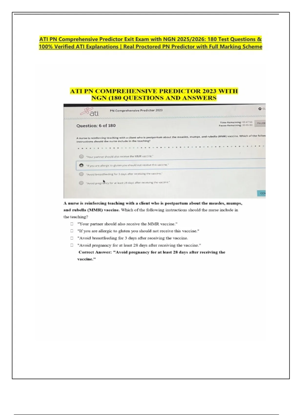ATI PN Comprehensive Predictor Exit Exam with NGN 2025/2026: 180 Test Questions & 100% Verified ATI Explanations | Real Proctored PN Predictor with Full Marking Scheme