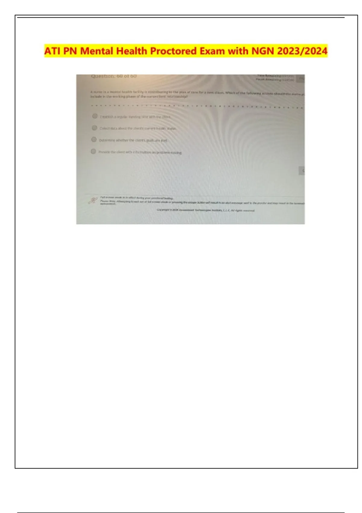 ATI PN Mental Health Proctored Exam with NGN 2023/2024