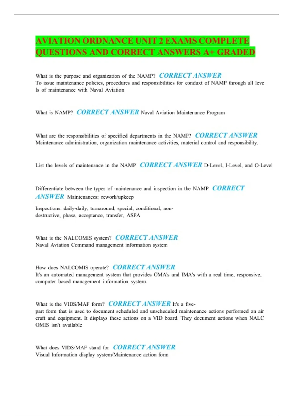 AVIATION ORDNANCE UNIT 2 EXAMS COMPLETE QUESTIONS AND CORRECT ANSWERS A+