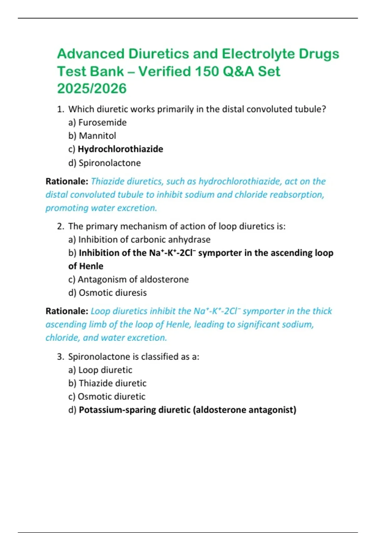 1. Which diuretic works primarily in the distal convoluted tubule?