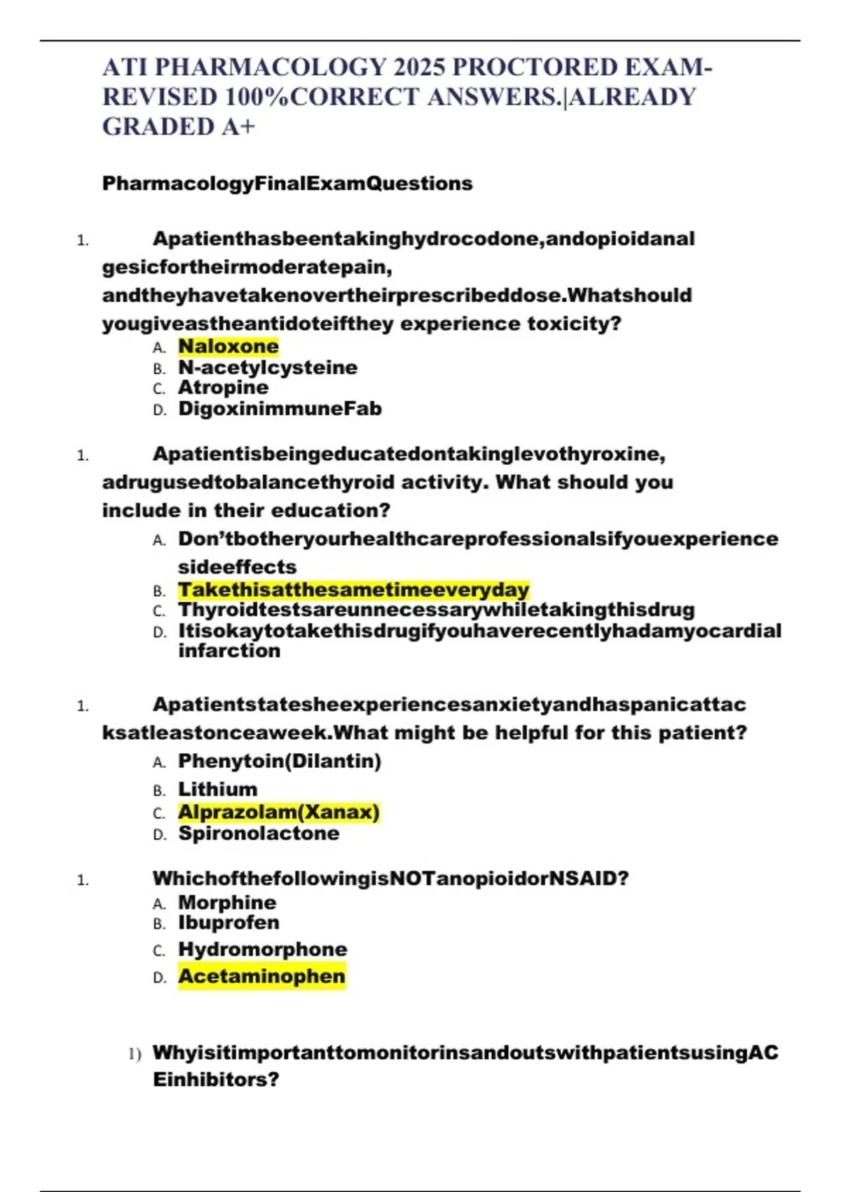 PharmacologyFinalExamQuestions