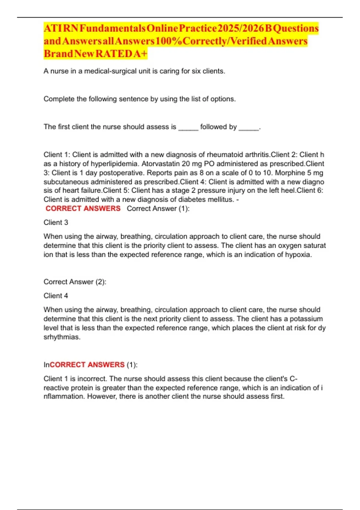 ClientA1AisAincorrect.ATheAnurseAshouldAassessAthisAclientAbecauseAtheAclient'sAC-