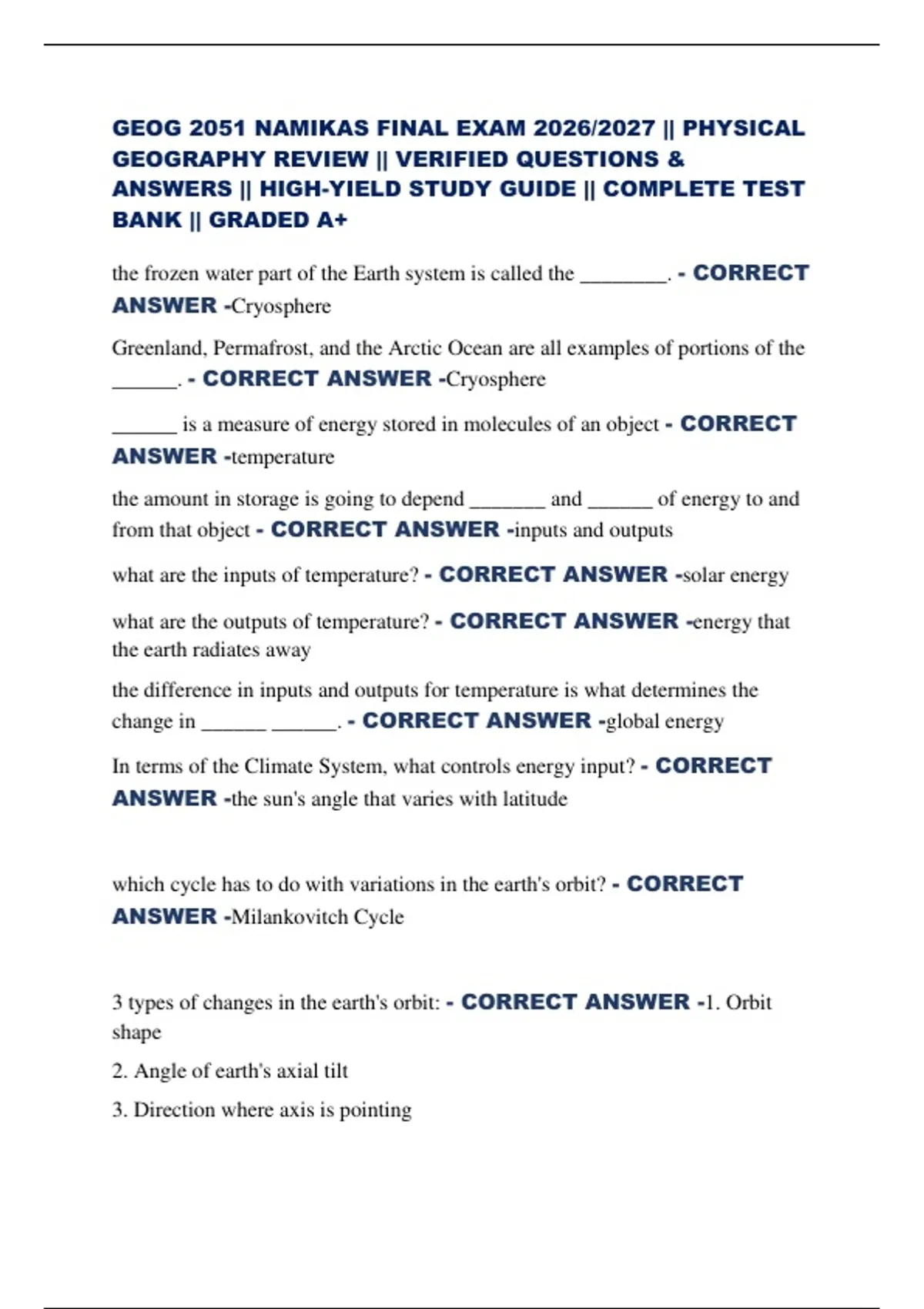 GEOGRAPHY REVIEW || VERIFIED QUESTIONS &