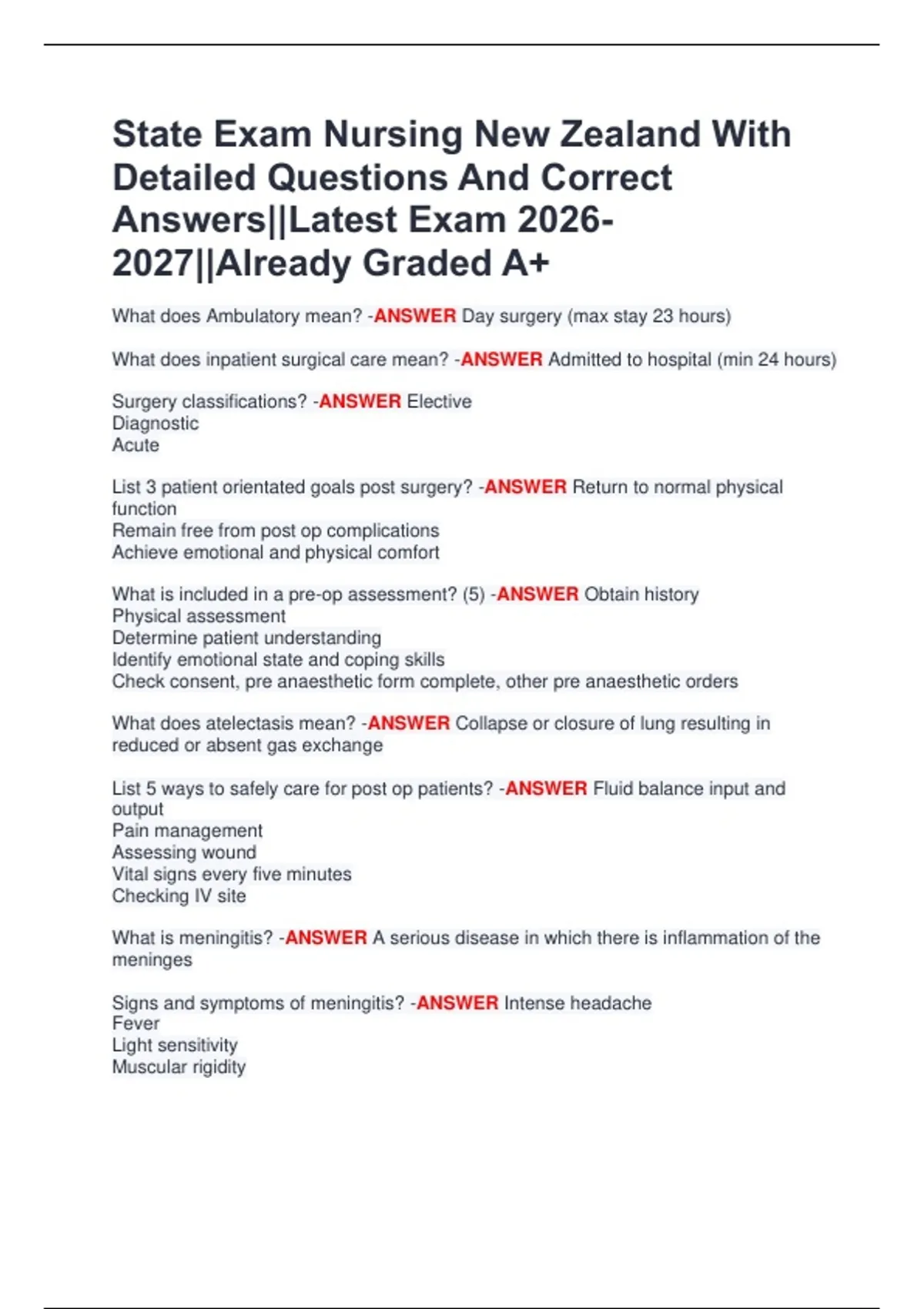Welcome to MasterDocs Official Store — your ultimate destination for verified exam papers, detailed study guides, and high-quality notes trusted by hundreds of students worldwide. I specialize in providing accurate, well-organized, and up-to-date exam materials that help students study smarter, not harder. Each document is carefully reviewed, clearly formatted, and packed with questions and verified answers from recent exams to ensure top performance and confidence on test day. Whether you're preparing for university finals, nursing boards, accounting tests, healthcare management exams, or TEAS/NCLEX practice, you’ll find the exact material you need — concise, reliable, and results-driven. ✅ Why Students Choose My Docs: Verified answers and updated content Professionally formatted for quick review Guaranteed accuracy and clarity Affordable prices for premium quality 100% student satisfaction