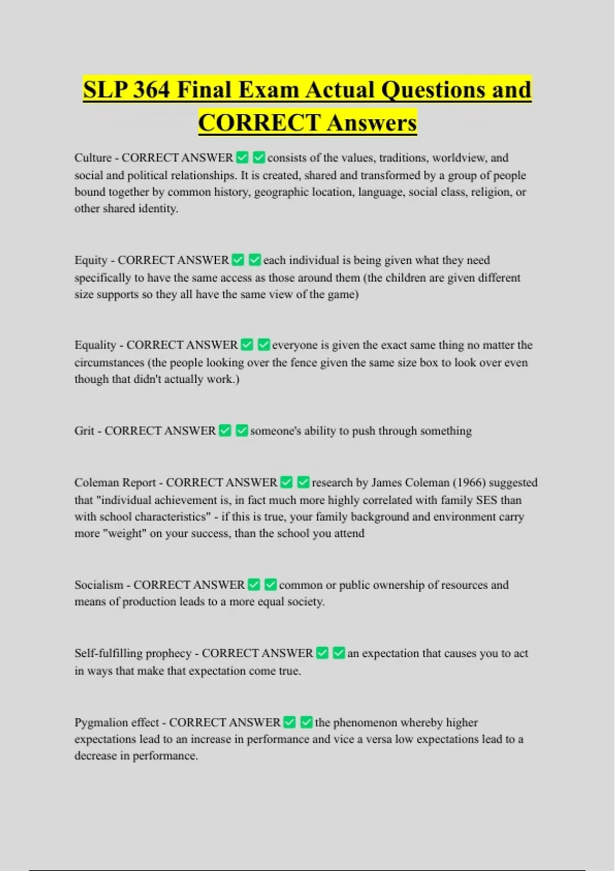 CORRECT Answers