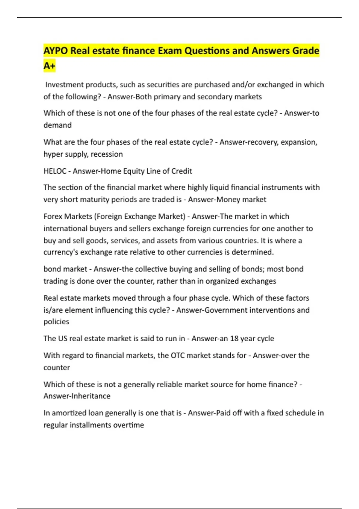 The US real estate market is said to run in - Answer-an 18 year cycle