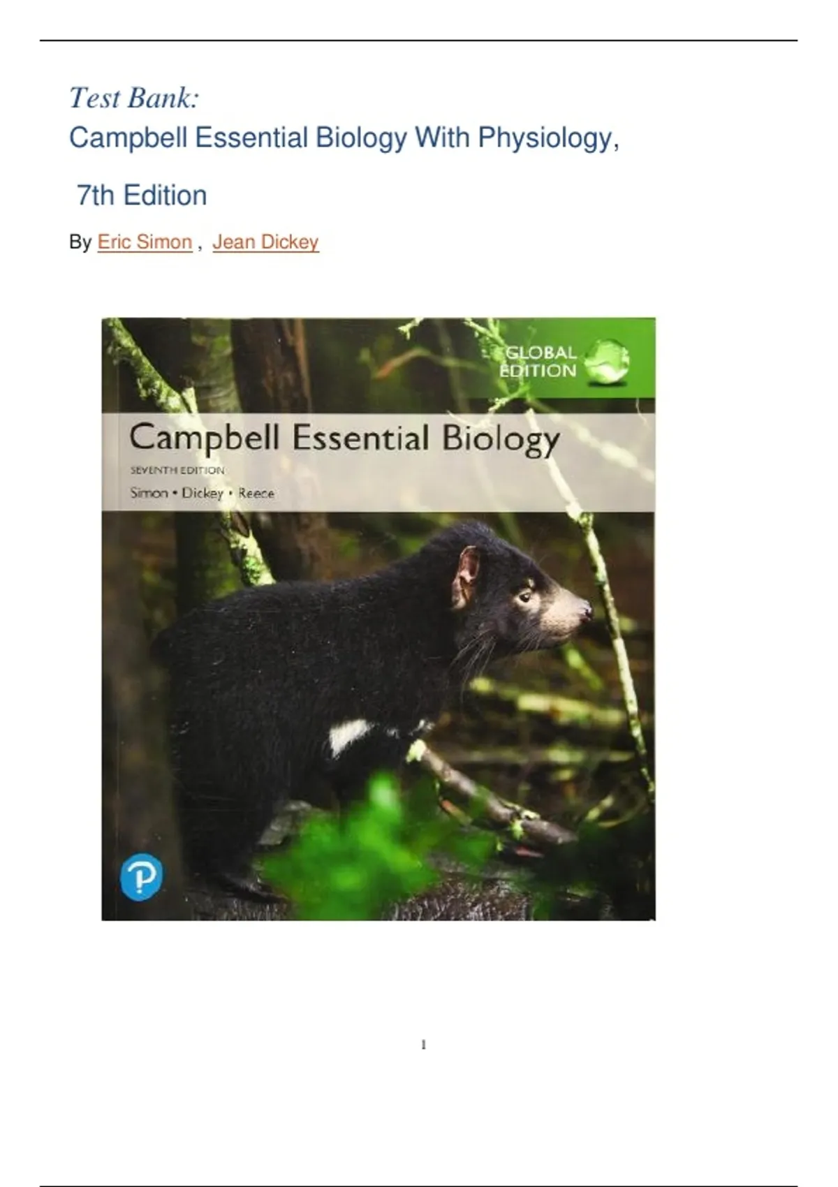 Test Bank For Campbell Essential Biology, Global Edition 7th Edition by Eric J. Simon, Jane B. Reece( All Chapters Covered) Latest 2026