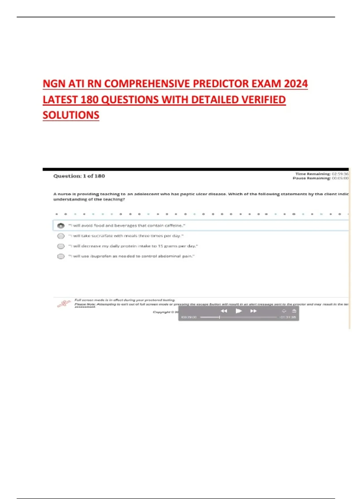 NGN ATI RN COMPREHENSIVE PREDICTOR EXAM 2024 LATEST 180 QUESTIONS WITH DETAILED VERIFIED SOLUTIONS