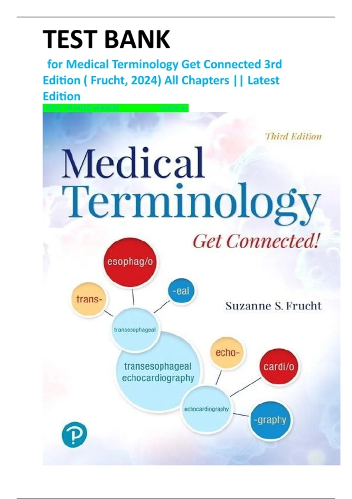 This is the complete newest Test Bank for Medical Terminology: Get Connected (3rd Edition) by Frucht, covering Chapters 1–17. It includes high-quality, verified exam questions with accurate answers to help students and educators master the language of medicine and apply it effectively in healthcare settings. Features: All chapters from 1–17 included Multiple-choice, true/false, matching, and fill-in-the-blank questions Correct answers for fast self-check Clear, organized, and easy-to-use format Best For: Medical and nursing students learning terminology Exam preparation and course review Allied health programs and self-study Tutors and instructors creating teaching resources With this test bank, you’ll quickly build your medical vocabulary, improve retention, and prepare confidently for exams. PDF