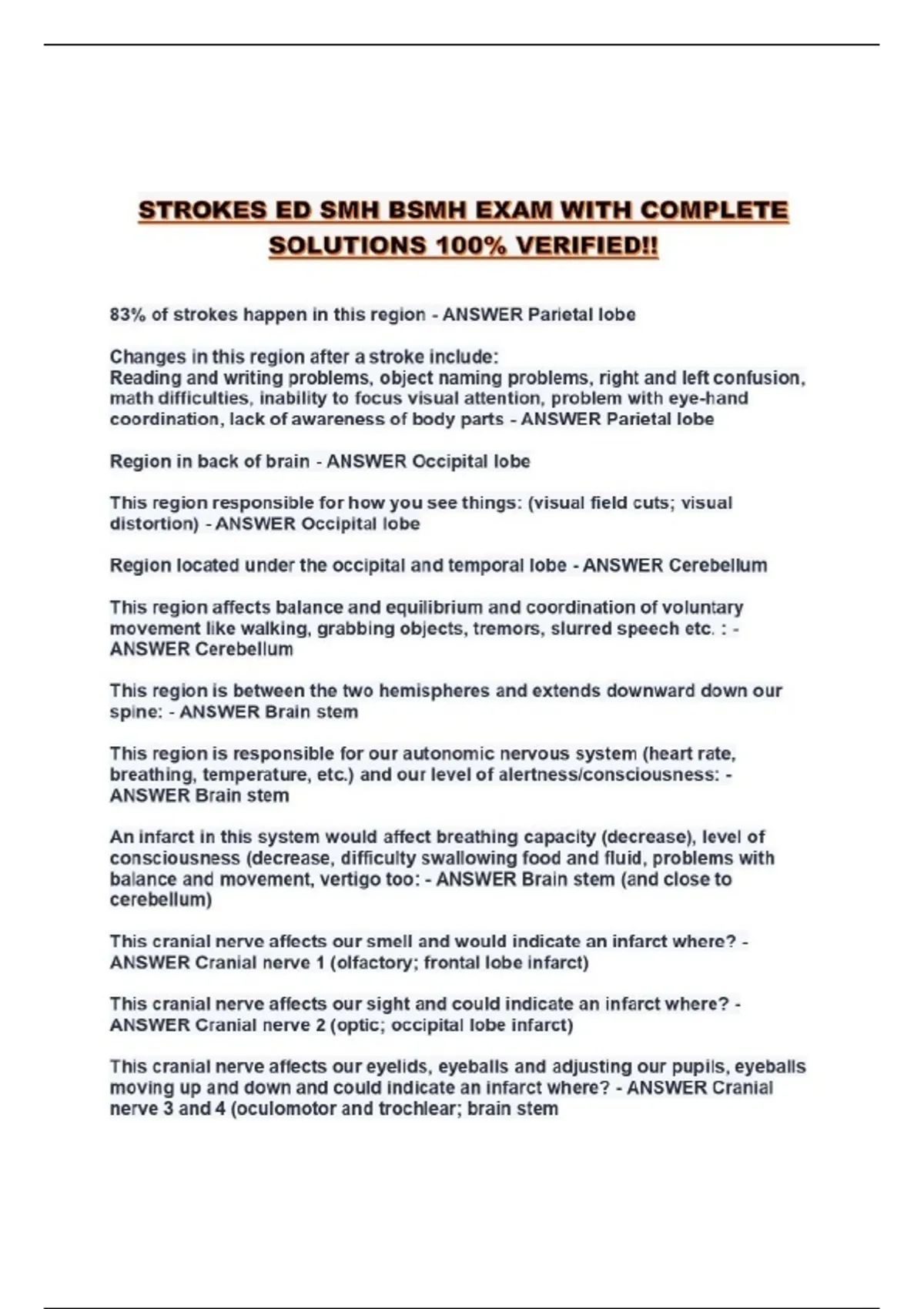 STROKES ED SMH BSMH EXAM WITH COMPLETE SOLUTIONS 100% VERIFIED!!...