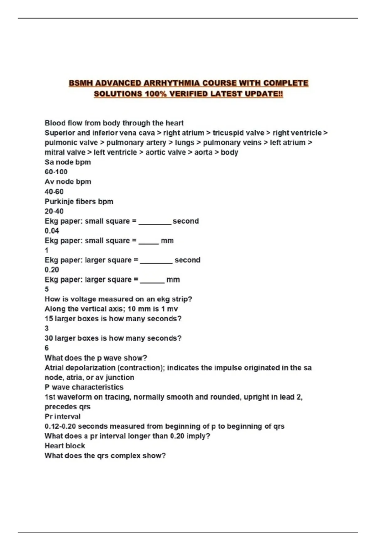 BSMH ADVANCED ARRHYTHMIA COURSE WITH COMPLETE SOLUTIONS 100% VERIFIED LATEST UPDATE!!...