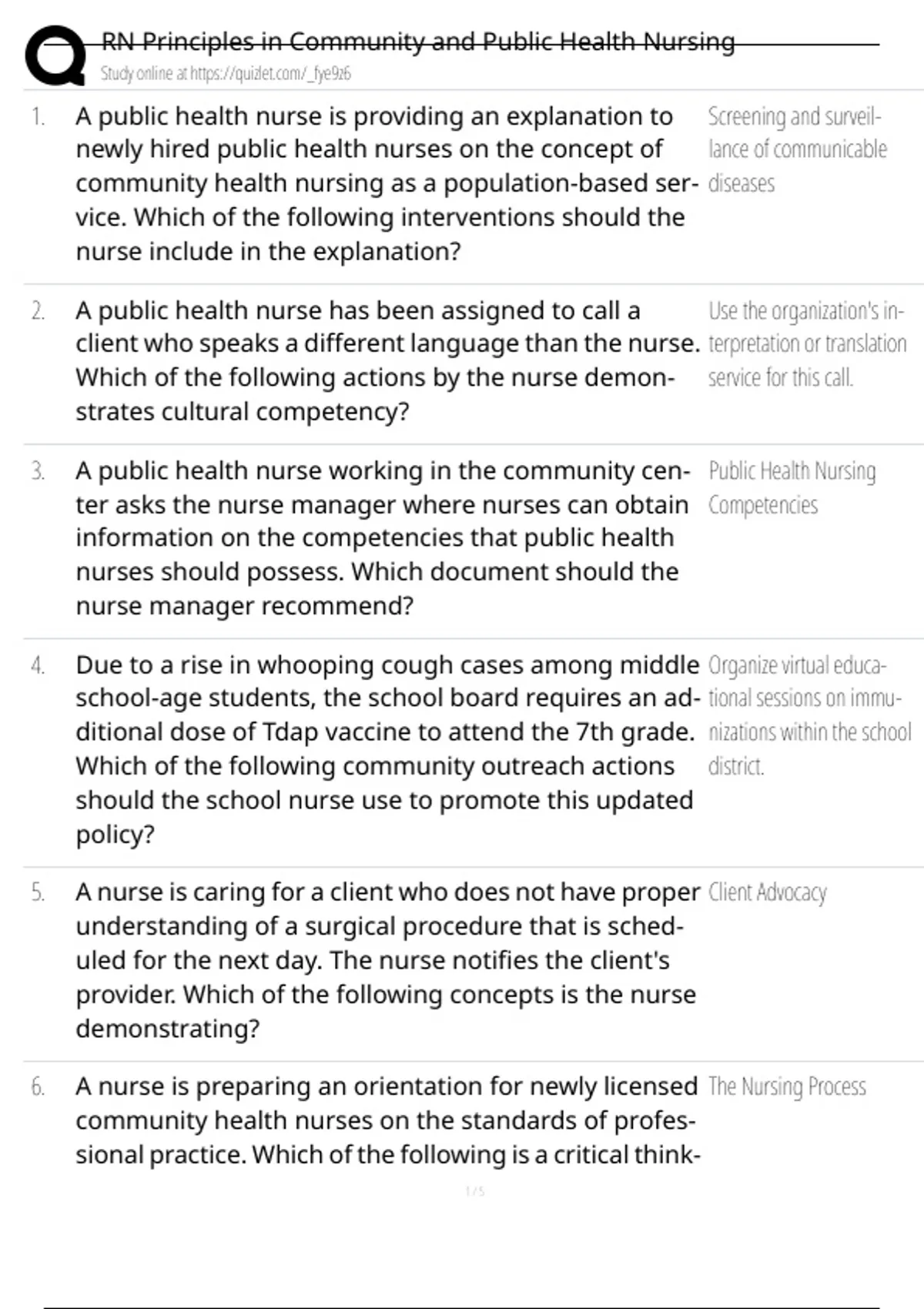 1. A public health nurse is providing an explanation to Screening and surveil-
