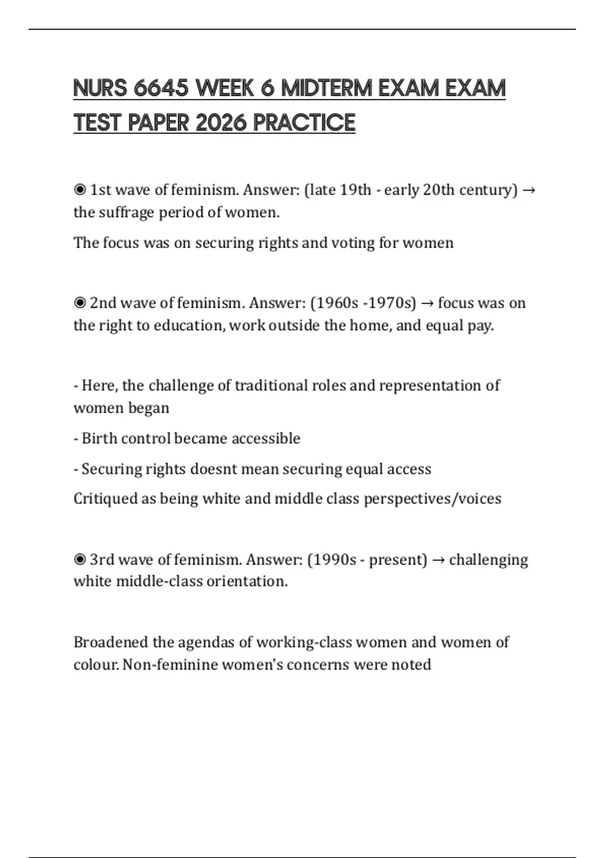 ,◉ 4th wave of feminism. Answer: (2010s - present) → focuses on