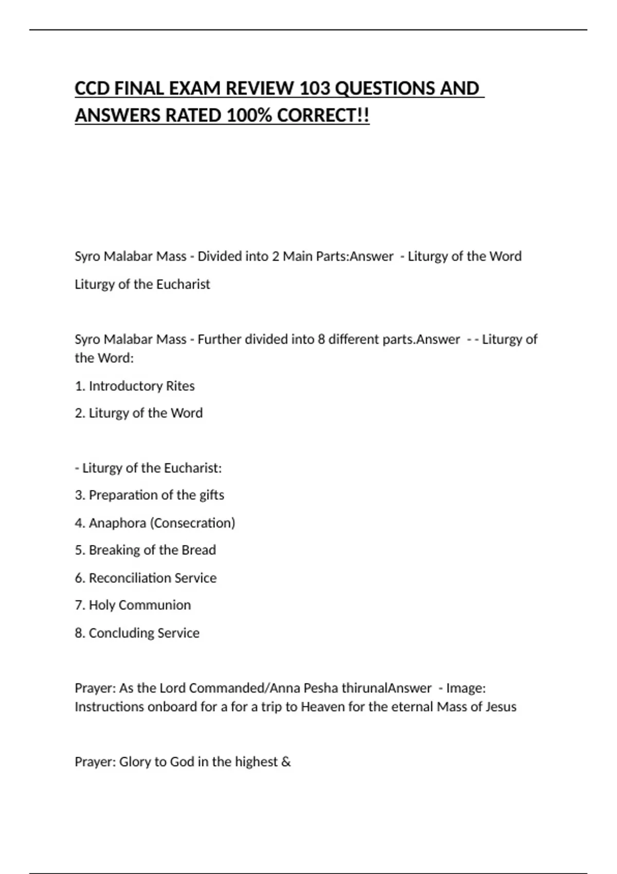 CCD FINAL EXAM REVIEW 103 QUESTIONS AND ANSWERS RATED 100% CORRECT!!