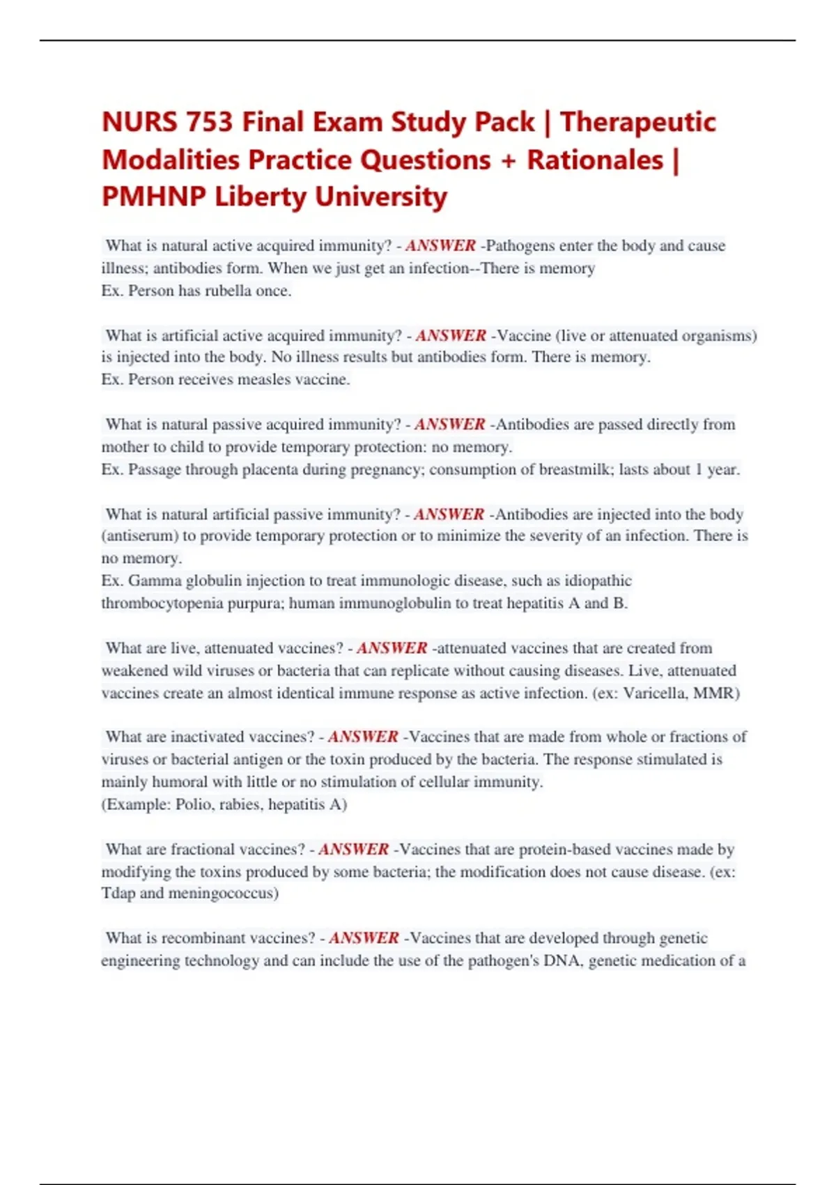 NURS 753 Final Exam Study Pack | Therapeutic Modalities Practice Questions + Rationales | PMHNP Liberty University