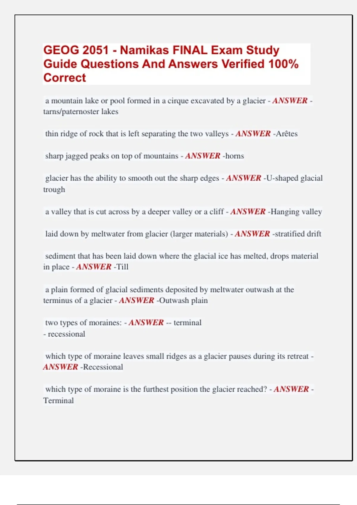 laid down by meltwater from glacier (larger materials) - ANSWER -stratified drift
