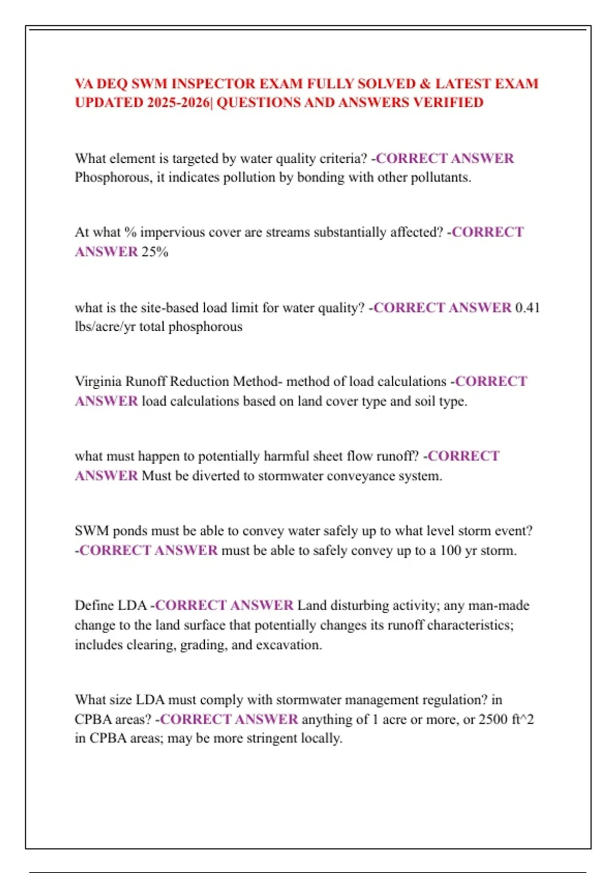 VA DEQ SWM INSPECTOR EXAM FULLY SOLVED & LATEST EXAM