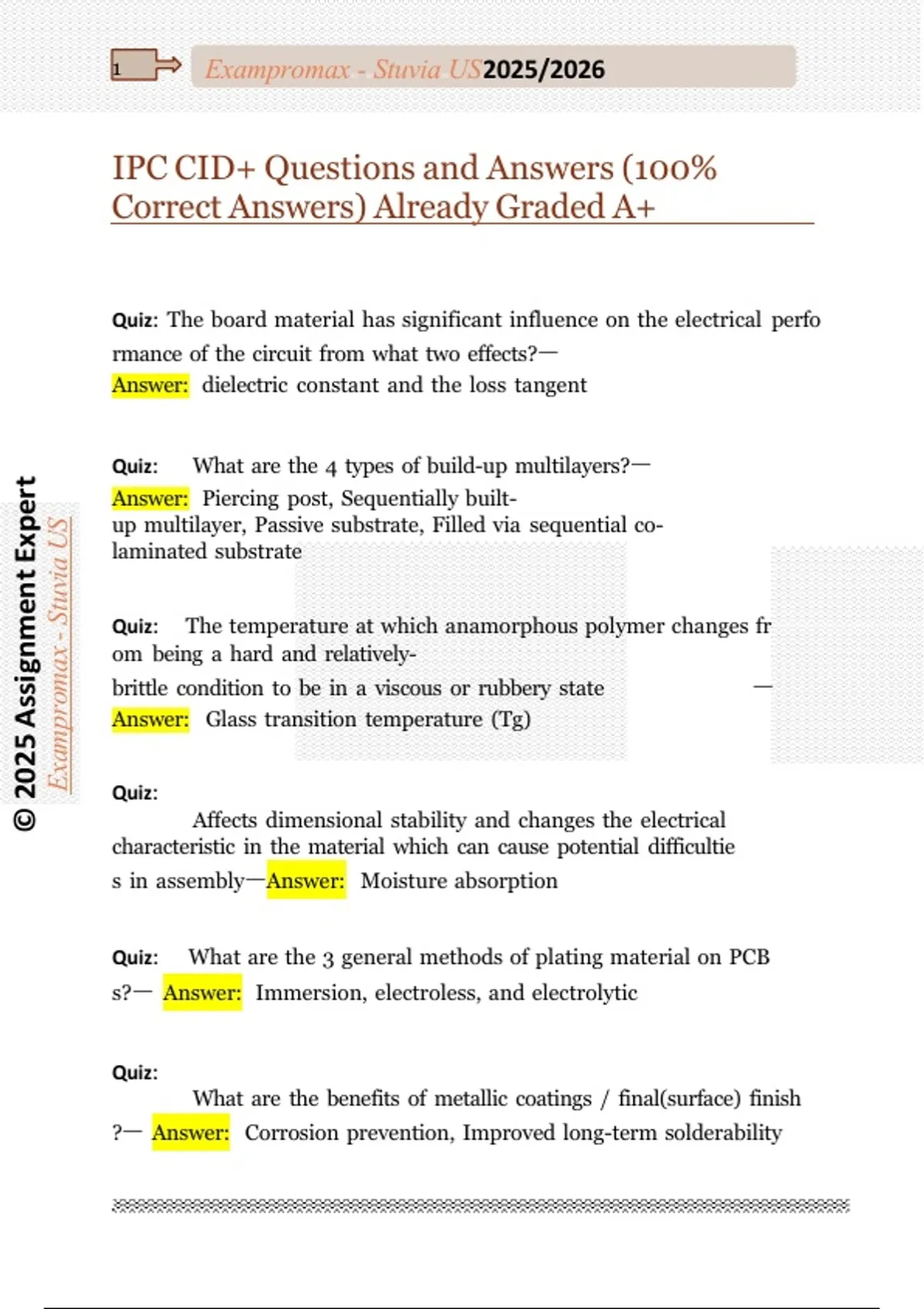 IPC CID+ Questions and Answers (100% Correct Answers) Already Graded A+