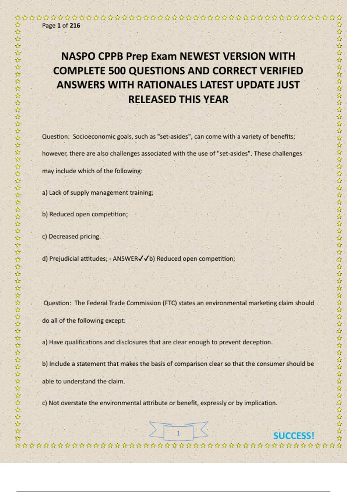 NASPO CPPB Prep Exam NEWEST VERSION WITH COMPLETE 500 QUESTIONS AND CORRECT VERIFIED ANSWERS WITH RATIONALES LATEST UPDATE JUST RELEASED THIS YEAR